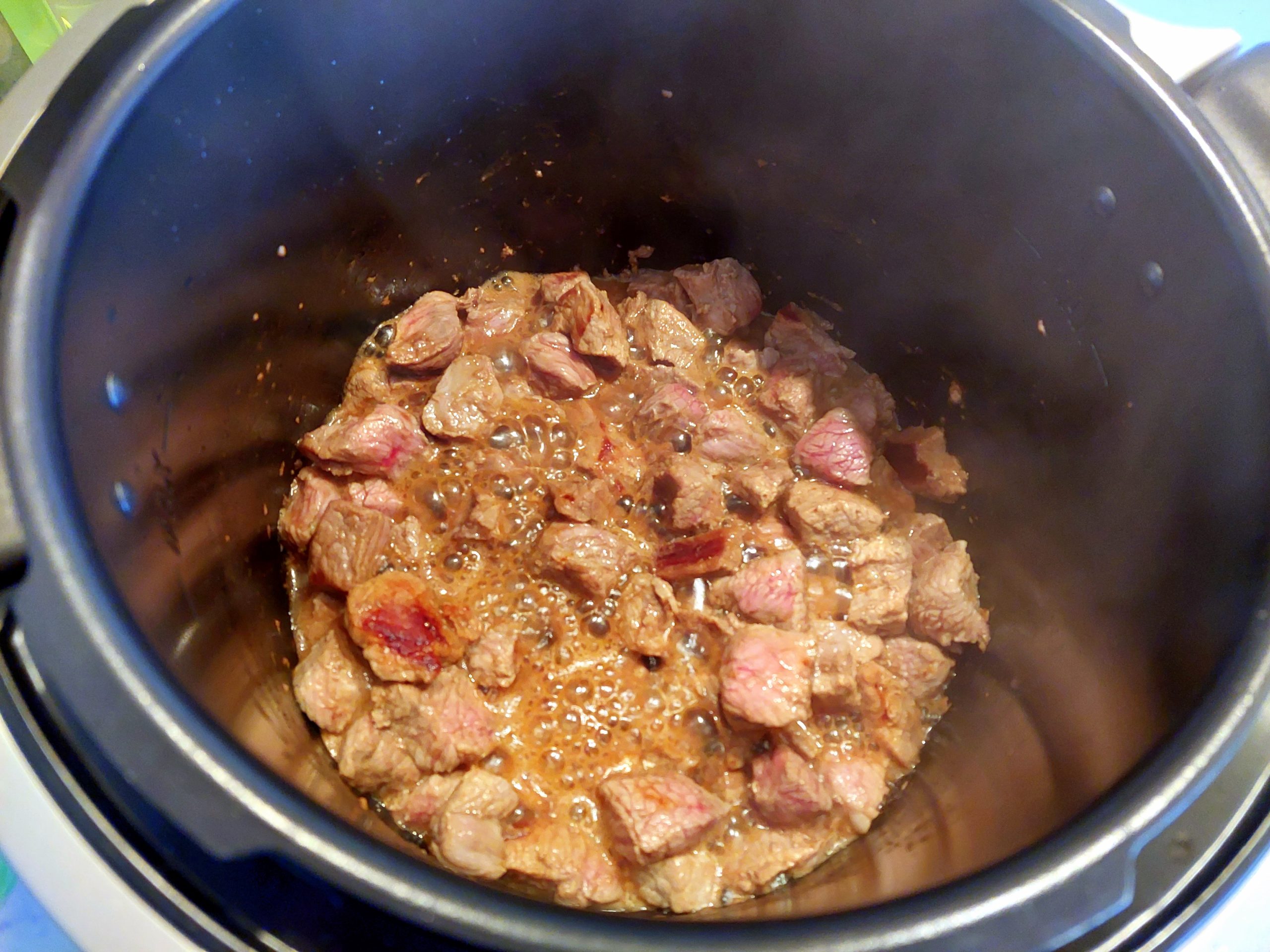 Gulasch in mundgerechte Stücke schneiden und in der Cook4Me anbraten.