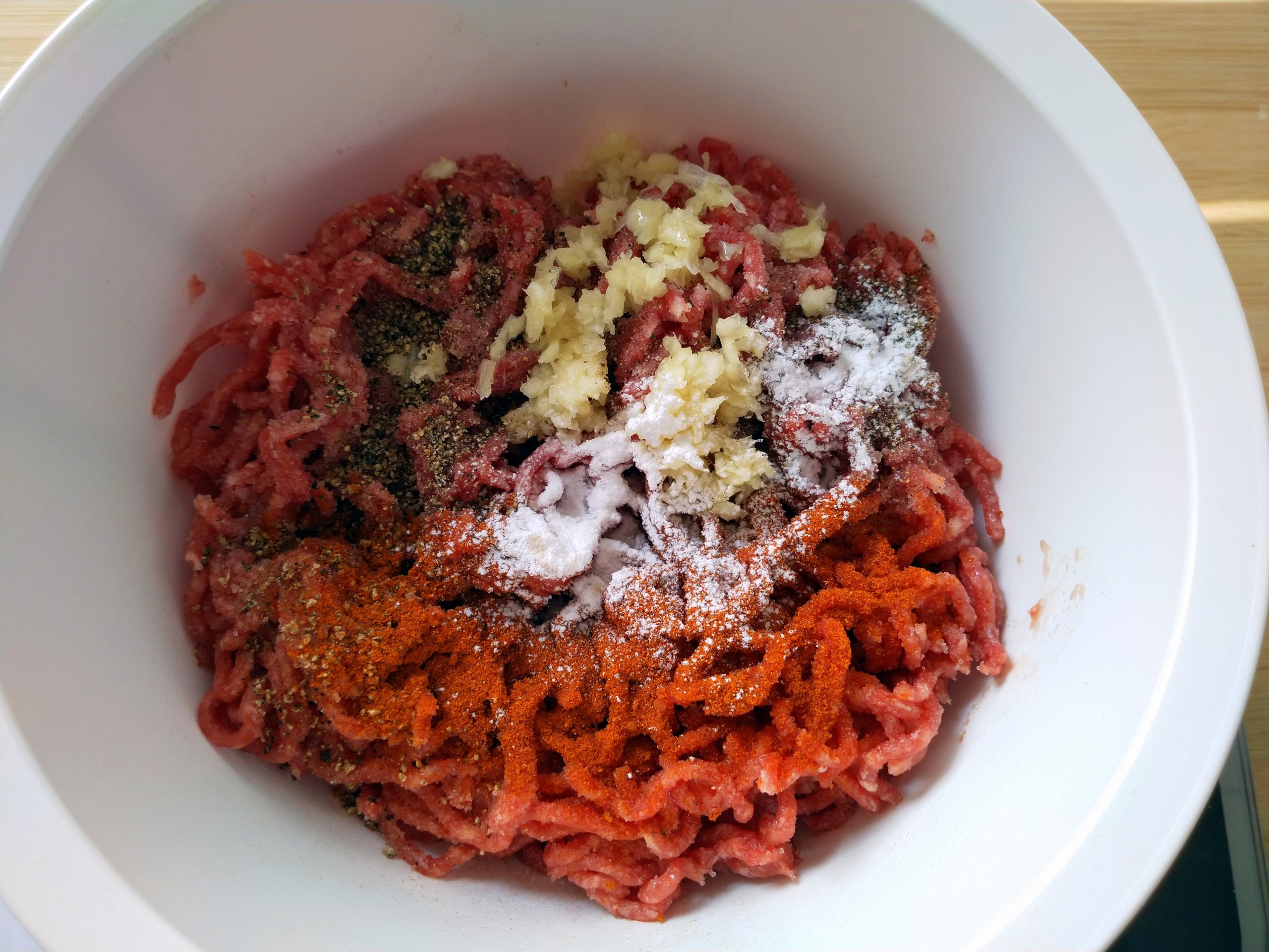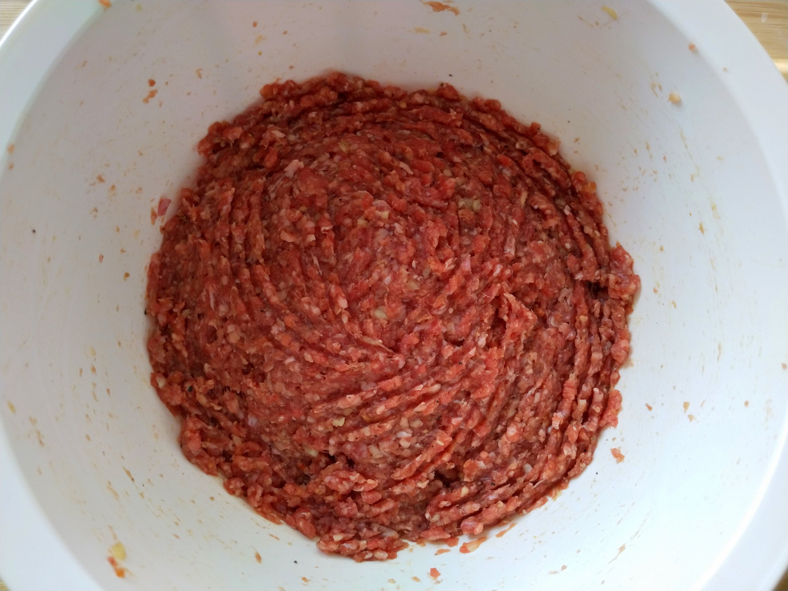 Hackfleisch gründlich mit Gewürzen vermischen.