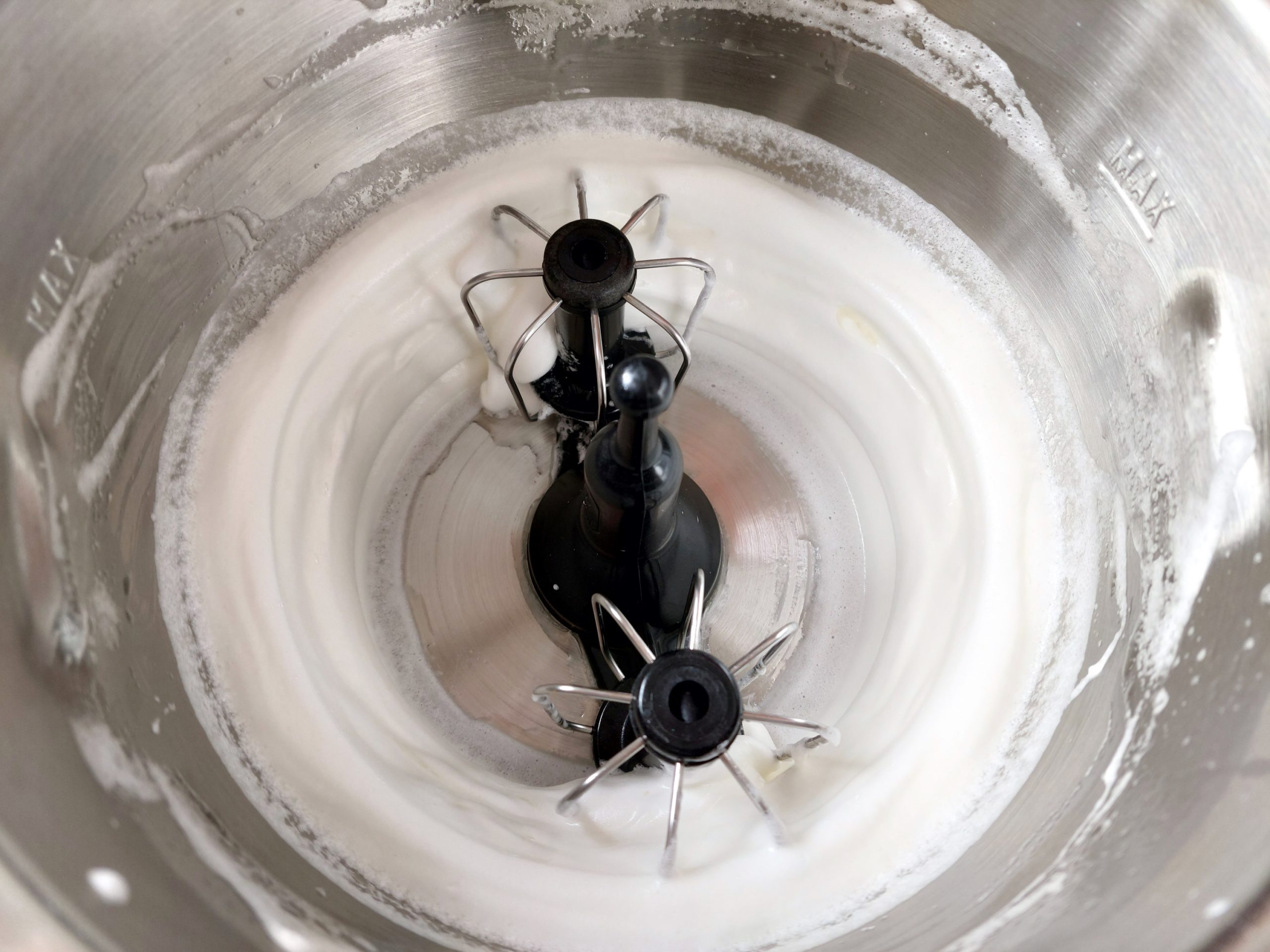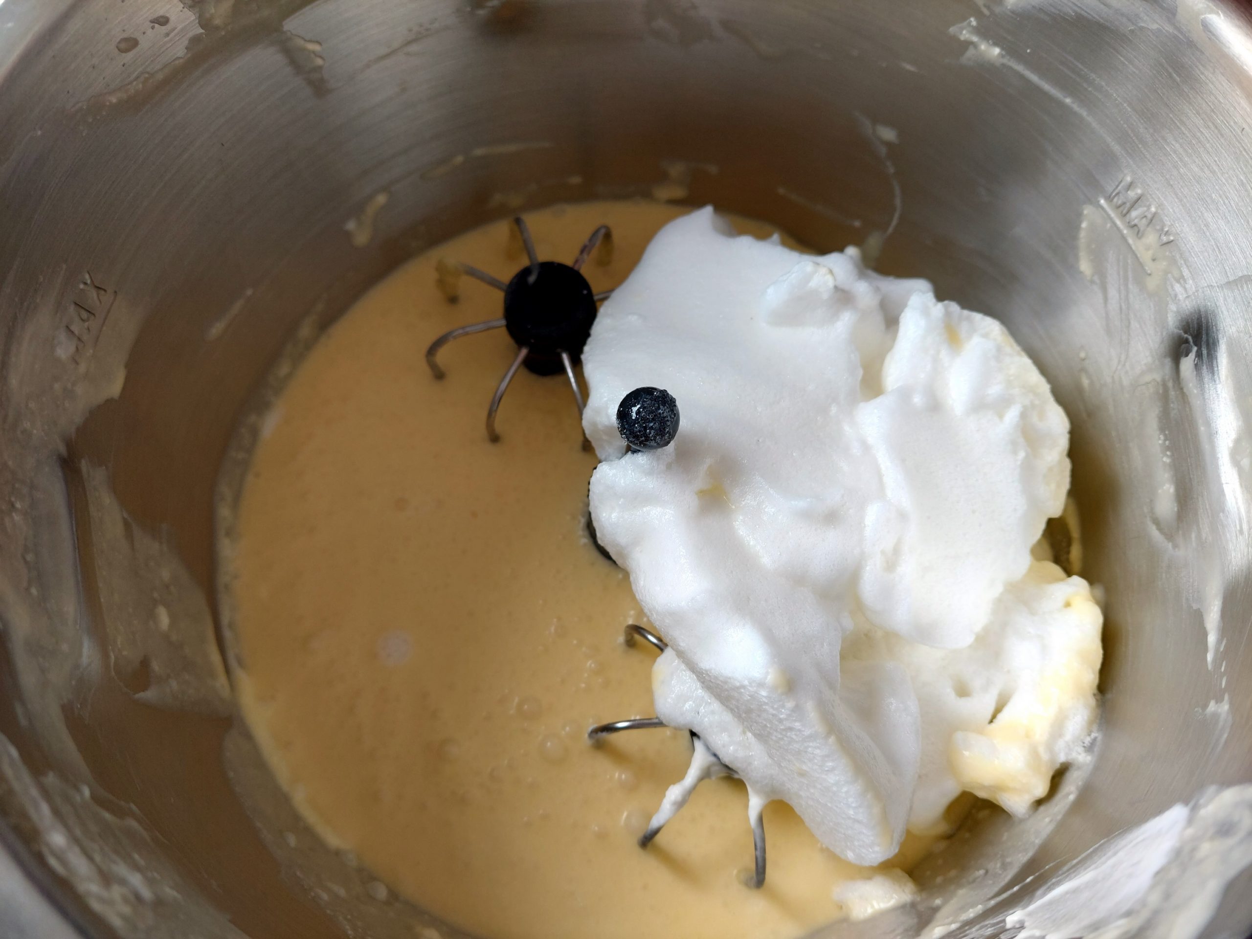 Bei Verwendung der Prep&Cook die steife Sahne für 30s auf Stufe 5 unterrühren, danach das Eiweiß dazugeben und für 15s auf Stufe 5 weiterrühren.