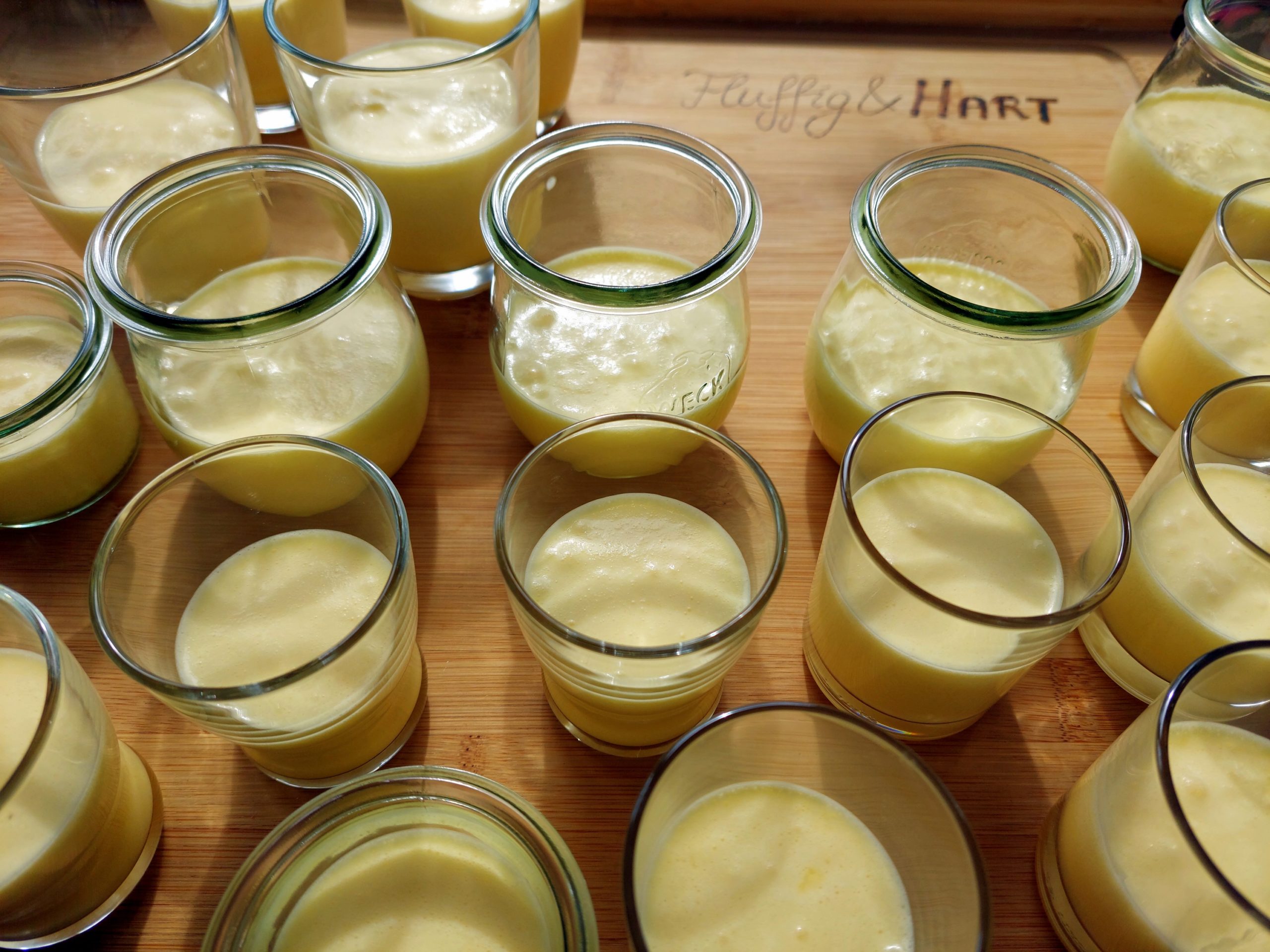 Die Creme in Dessertgläser füllen und Platz für das Topping lassen. Im Kühlschrank mind. 3h kühlen.