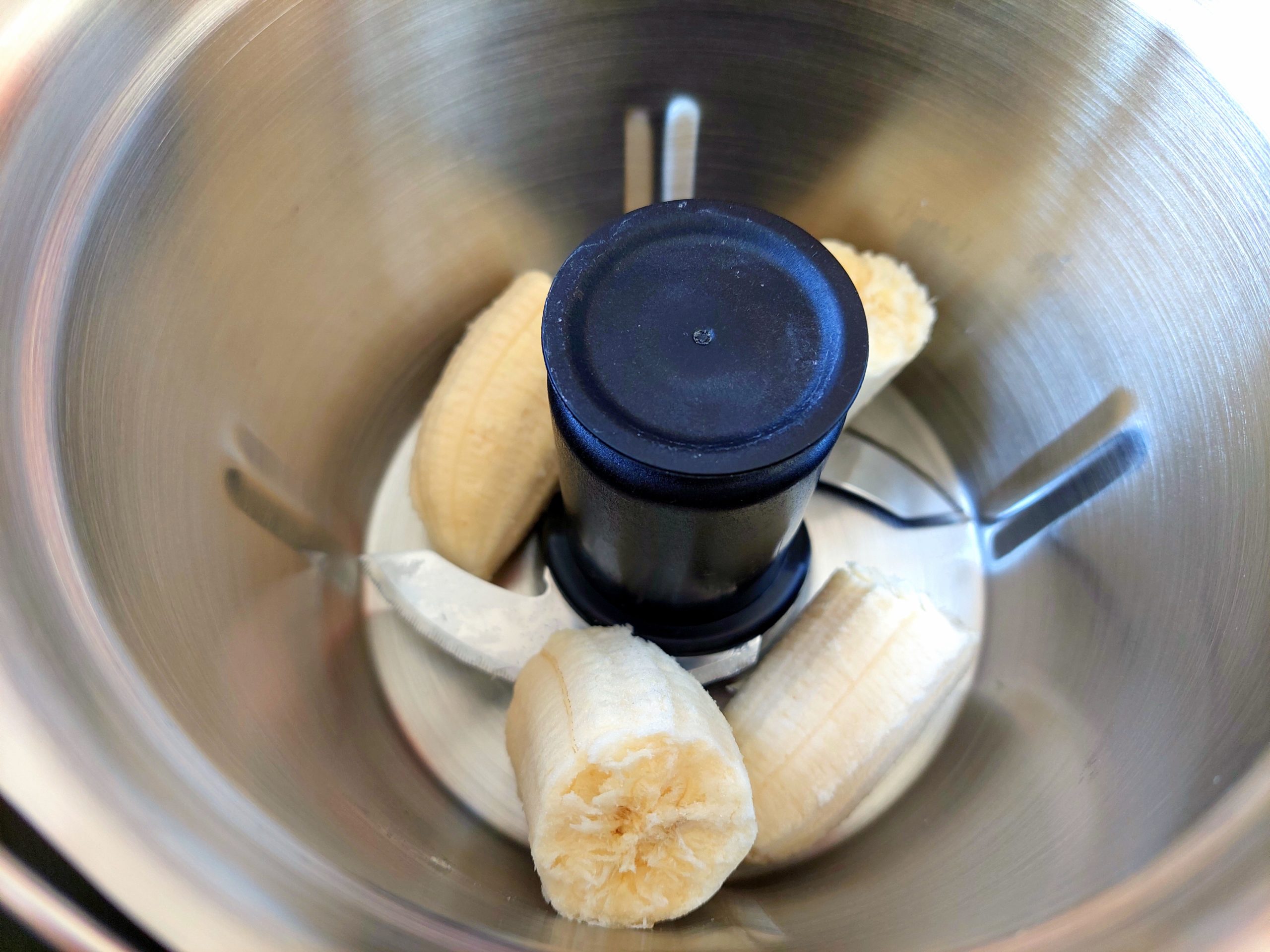 Bei Verwendung der Prep&Cook die Minischüssel einsetzen und die Banane in groben Stücken hineingeben. Auf Stufe 11 ca. 15s pürieren.