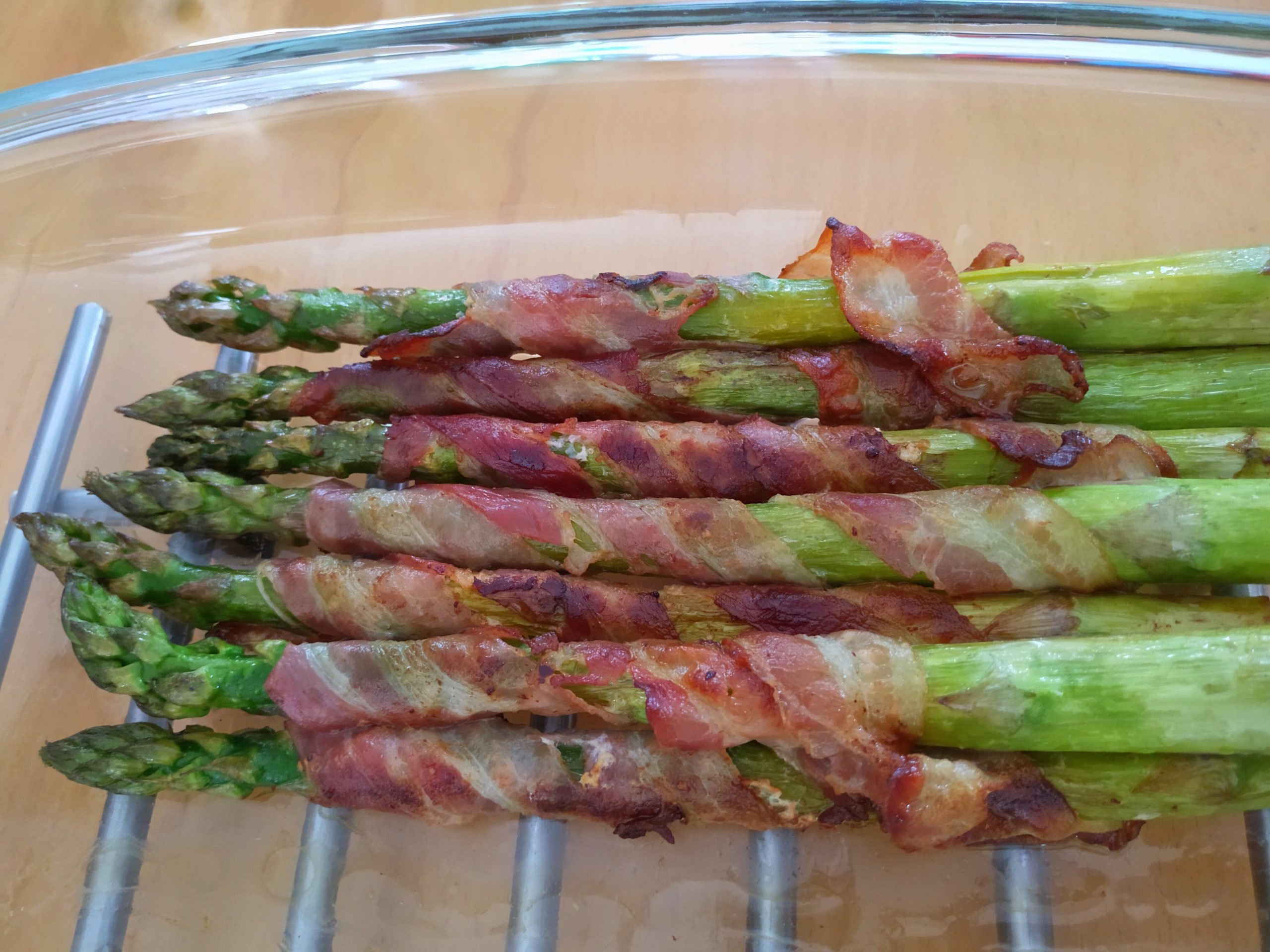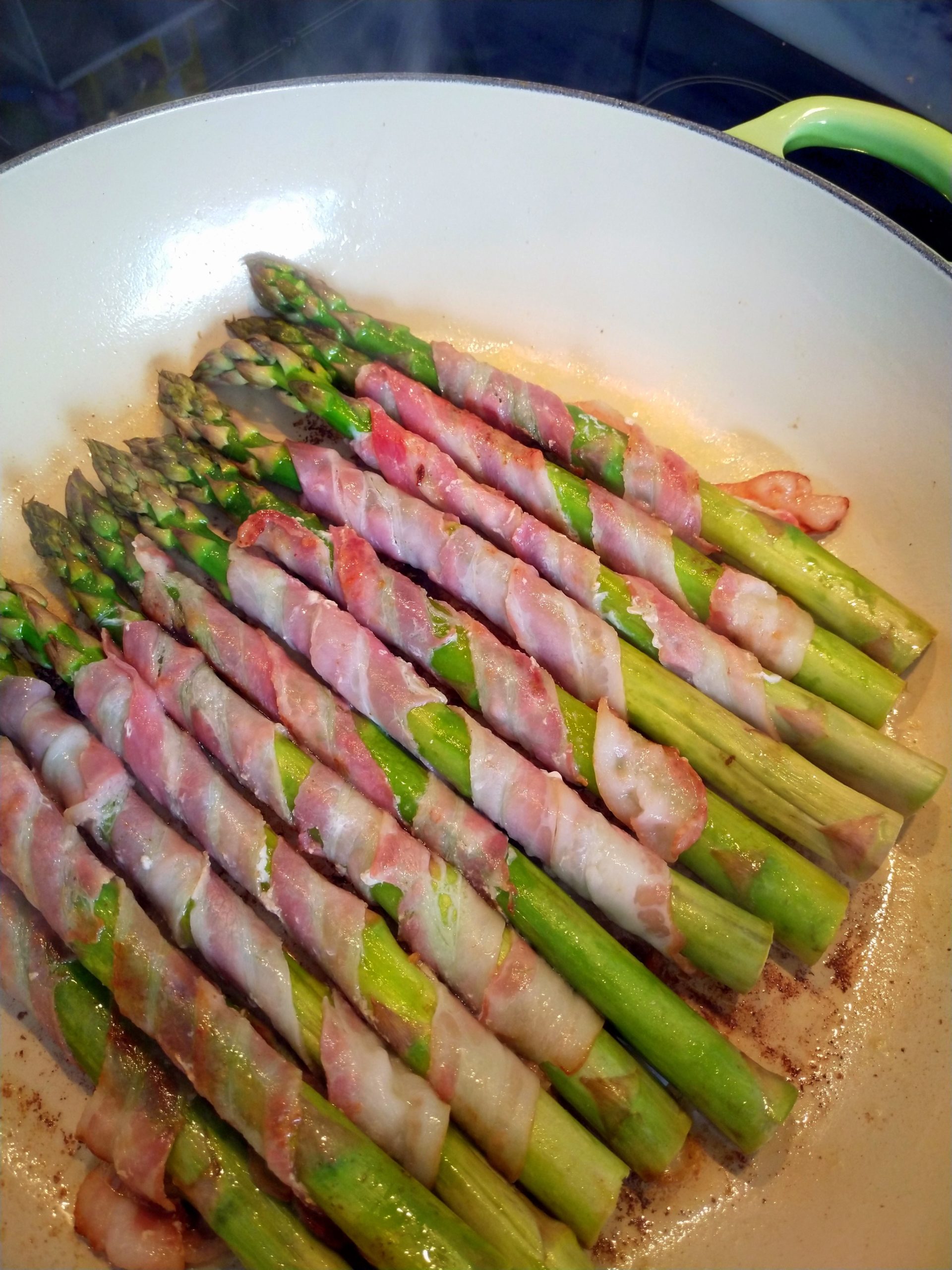 Gemüse ist ja so eine Sache mit Kindern und Spargel selten eine Sorte, die toleriert wird. Grüner Spargel hat den Vorteil, dass er nicht geschält werden muss, so dass ein Teil der Arbeit schon mal wegfällt. Das Umwickeln mit Speck gibt dem Ganzen das gewisse Etwas im Geschmack, so dass grüner Spargel mit Speck tatsächlich ganz gerne bei uns von der ganzen Familie gegessen wird.