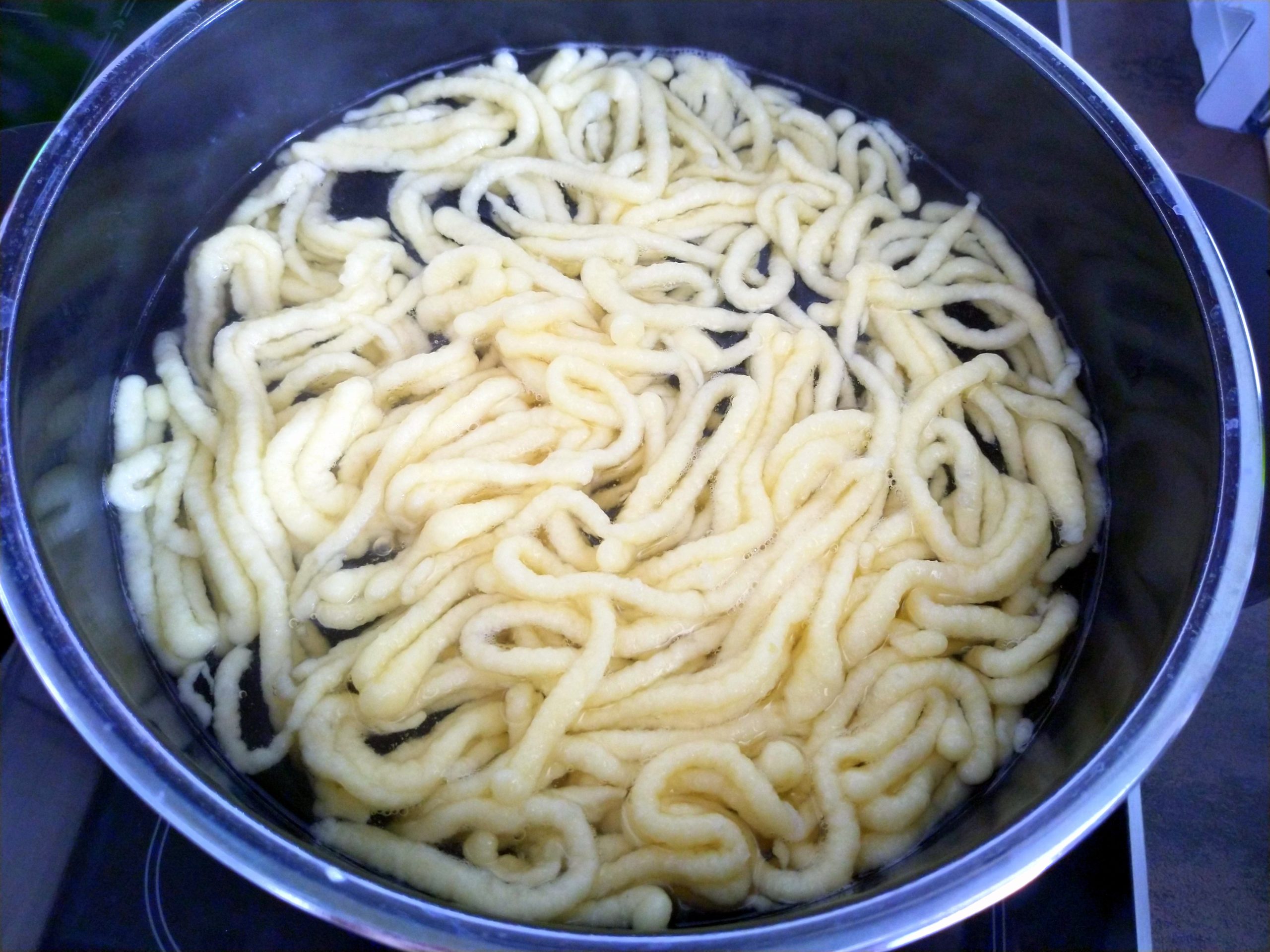 Was wäre Schwaben ohne echte Käsespätzle. Schnell selbst gemacht, hat man ein schmackhaftes Essen für starke Esser.