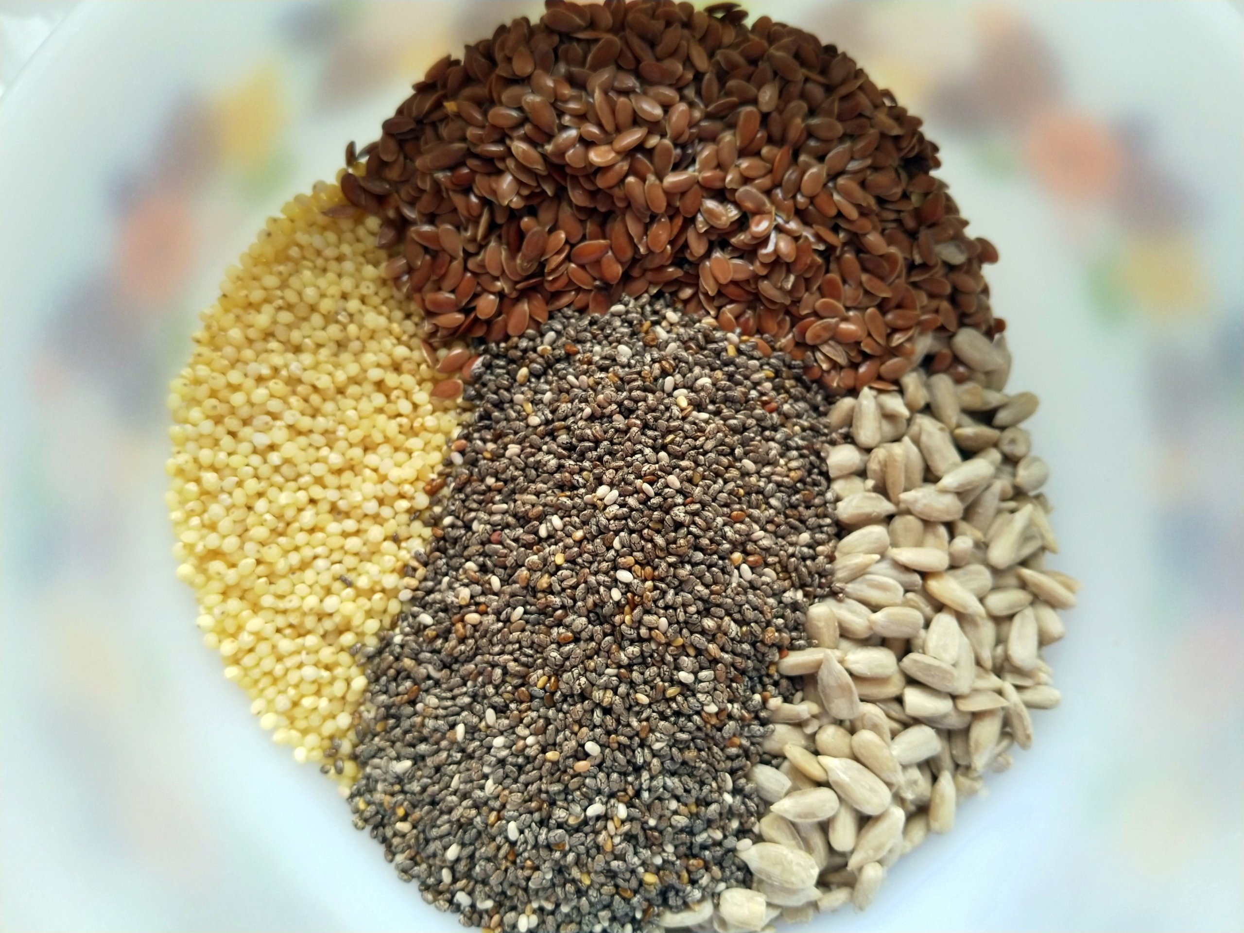 Saaten in einer Schüssel mischen und mit dem Wasser übergießen. 24 h quellen lassen, dabei ab und zu umrühren.