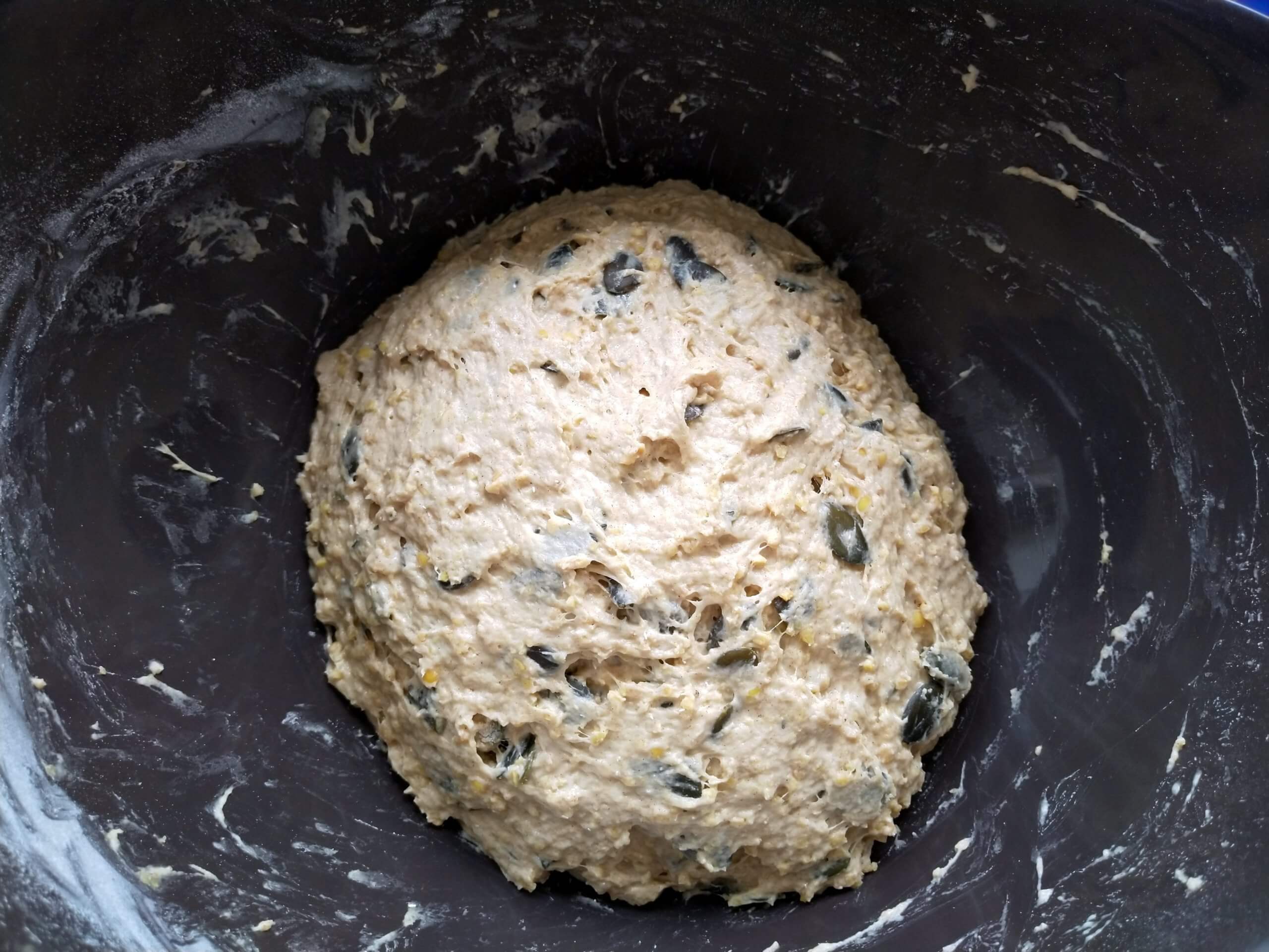 Wer ohne Backmischung Kürbiskern-Brot backen möchte, für den habe ich dieses Dinkelbrot mit Kürbiskernen im Blog.