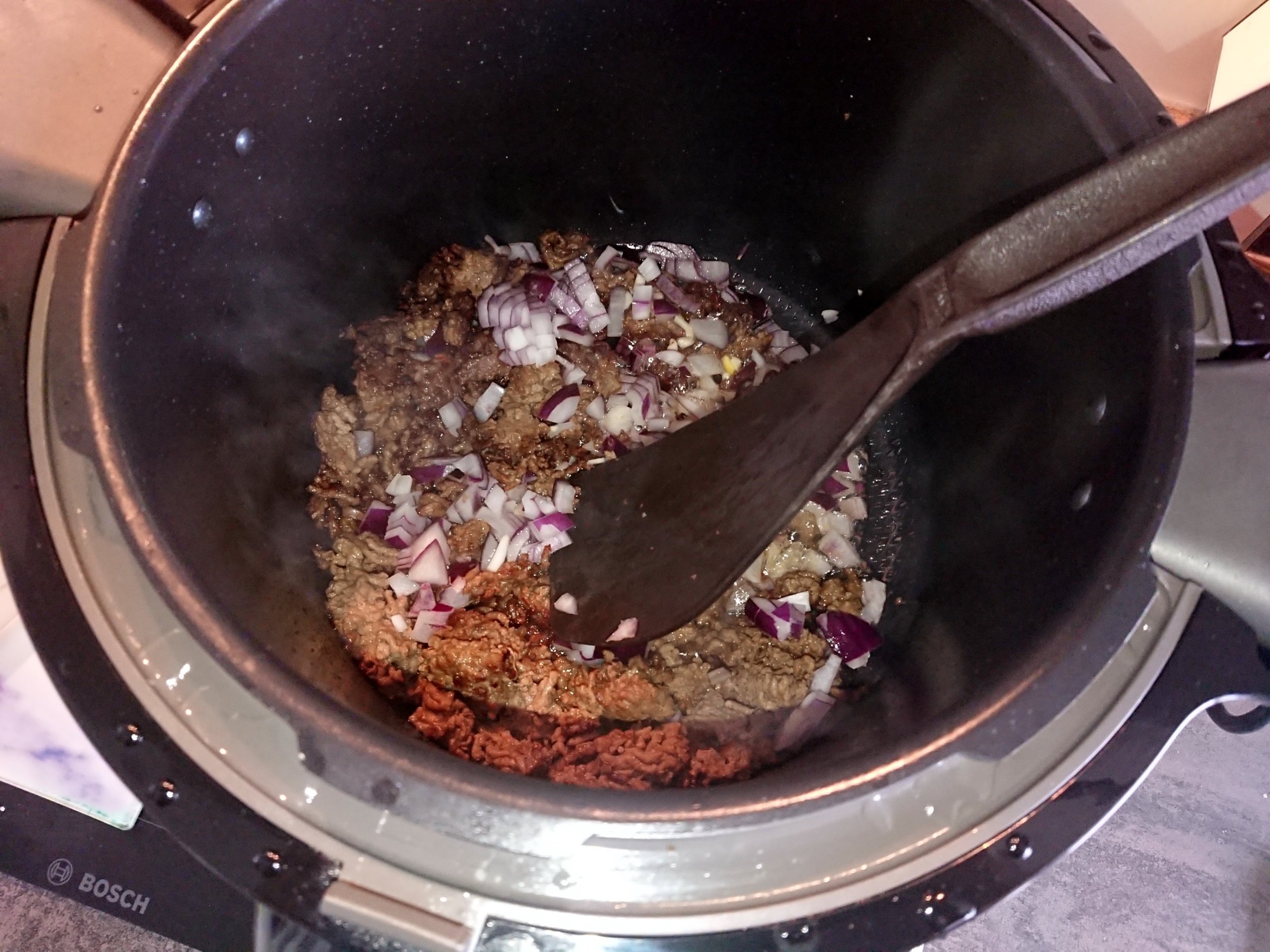 Dieses Rezept eignet sich perfekt für's Kochen nebenher. Man muss nur beim Fleisch dabei sein, den Rest erledigt die Cook4Me selber.