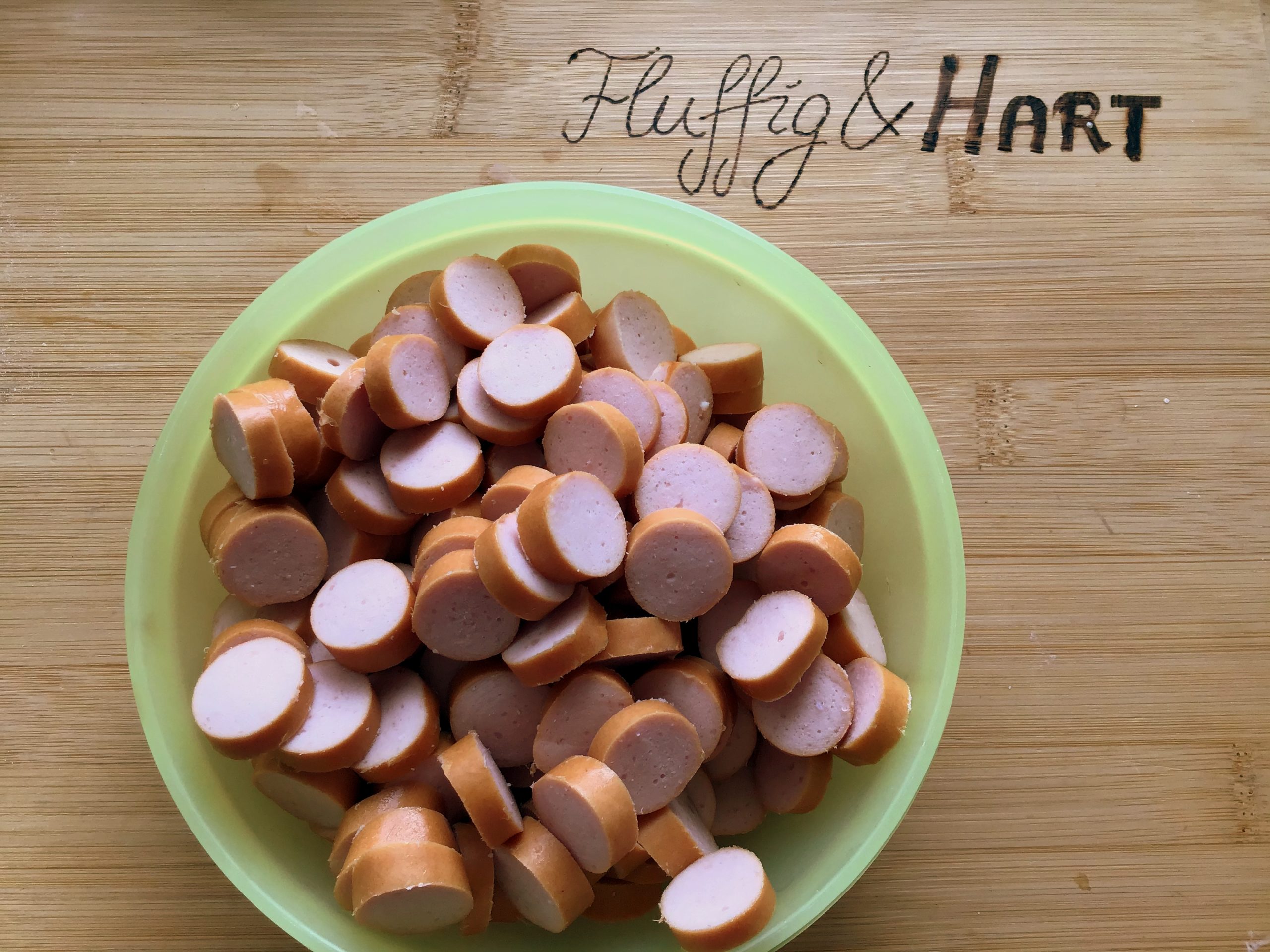 1. Während die Linsen garen, die Spätzle kochen und die Saitenwürste in kleine Rädchen schneiden. Klassisch werden sie als Paar auf den Linsen serviert, ich mag sie lieber direkt kleingeschnitten.