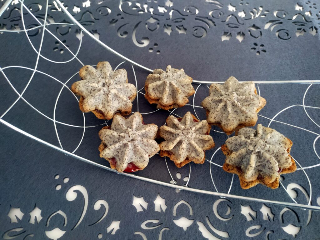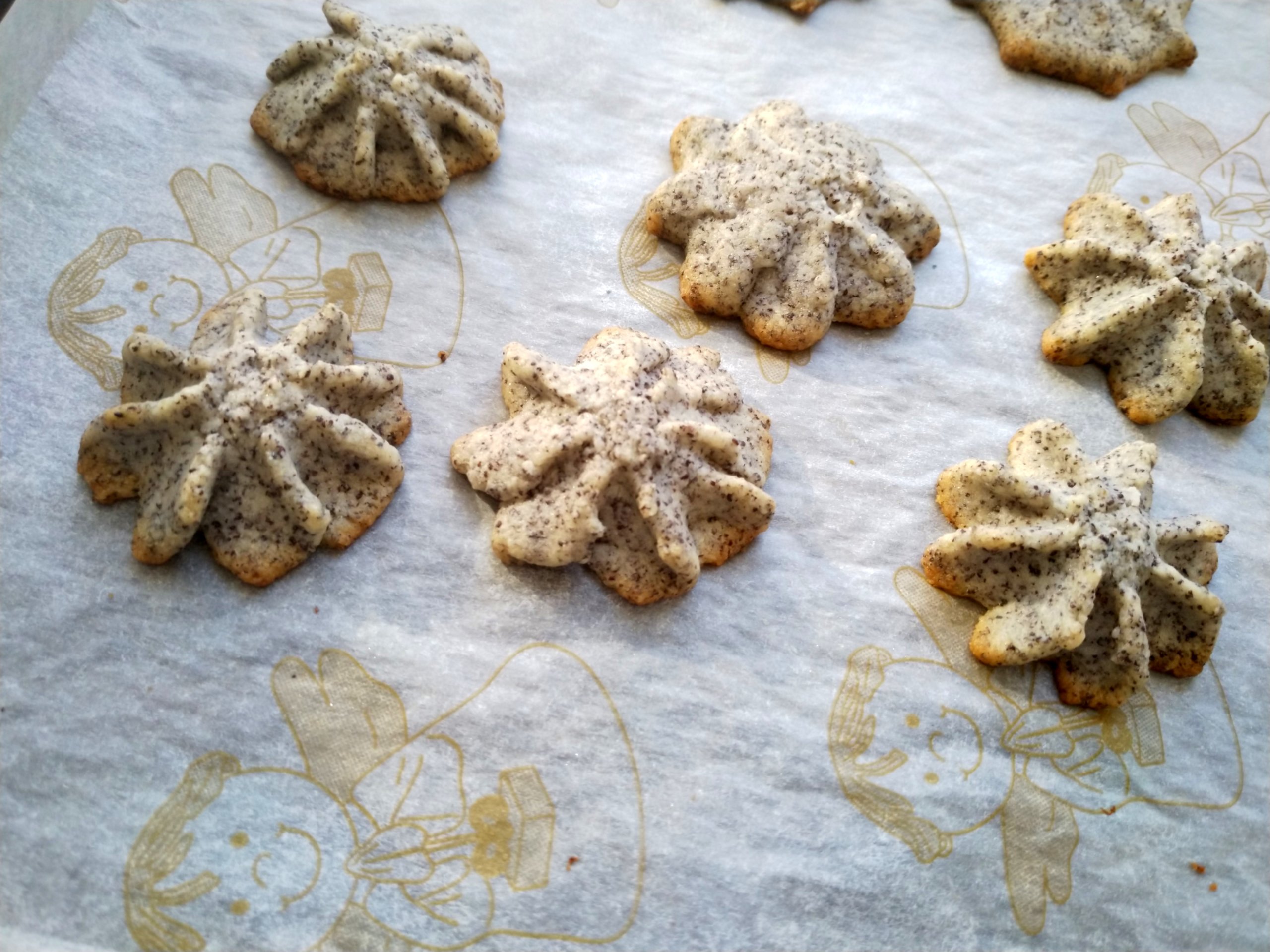 Mit einer Gebäckspritze kann man viele tolle Sachen machen, zum Beispiel diese tollen kleinen Mohn-Kirsch-Hütchen. Der Teig ist schnell hergestellt und einfach zu verarbeiten. Eine schöne Abwechslung zu all den nussigen Plätzchen zu Weihnachten. Der Teig ist sehr cremig und lässt sich deshalb auch gut mit einer Gebäckspritze verarbeiten. Gerade wenn Kinder mitbacken möchten, ist eine Gebäckspritze viel einfacher zu handhaben als eine Spritztüte. So haben auch jüngere Kinder die Gelegenheit, sich bei der Weihnachtsbäckerei zu beteiligen.
