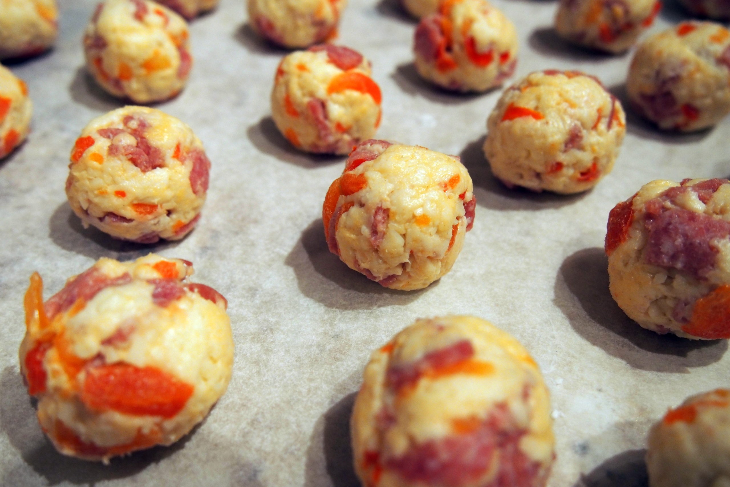 Ich backe die Pizzabällchen gerne für Partys, da es einfaches Fingerfood ist und meist jedem schmeckt. Eine vegetarische Variante statt Bacon mit eingelegten Oliven ist genauso möglich.