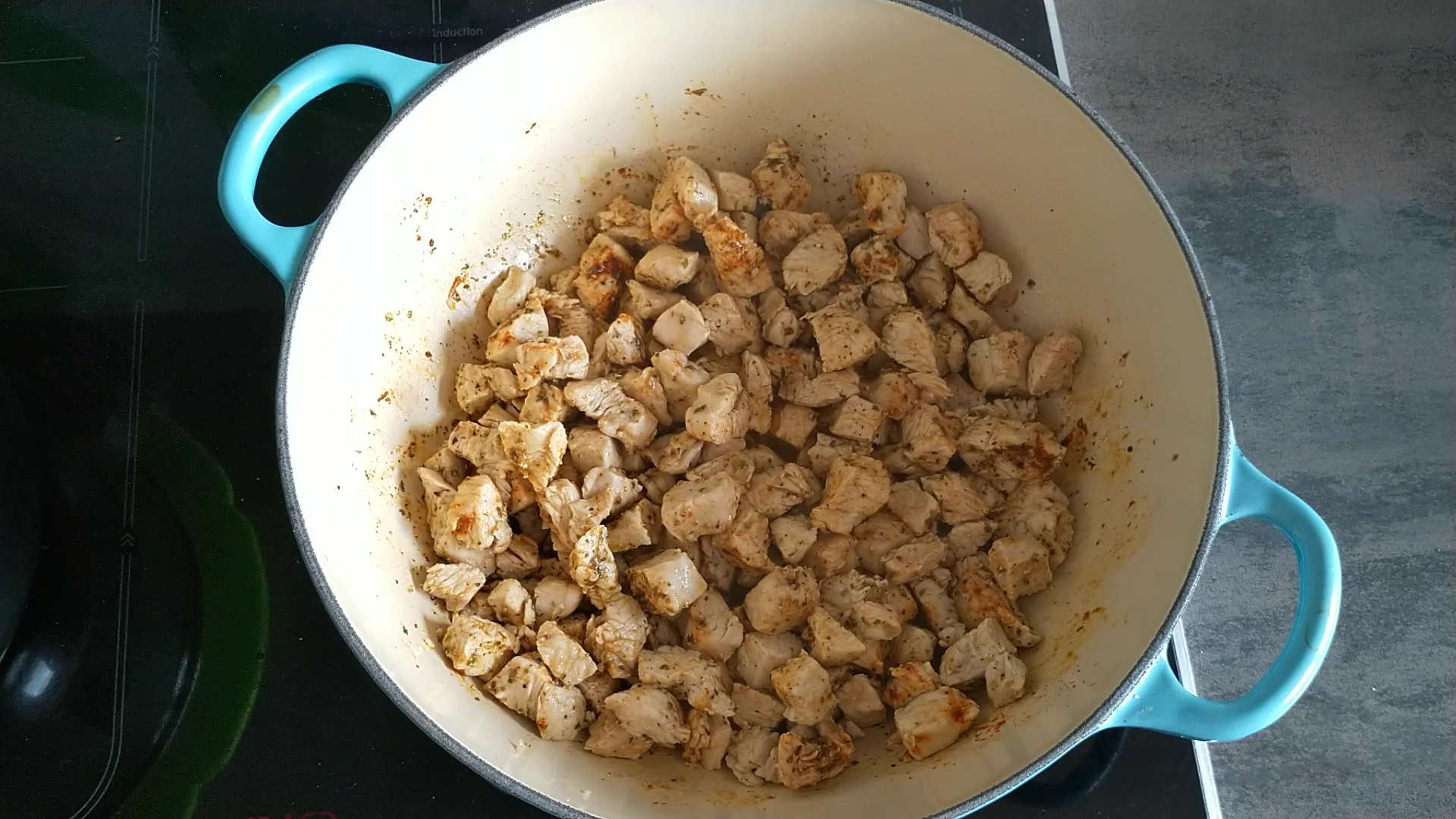 1. Putenfleisch in mundgerechte Stücke schneiden.