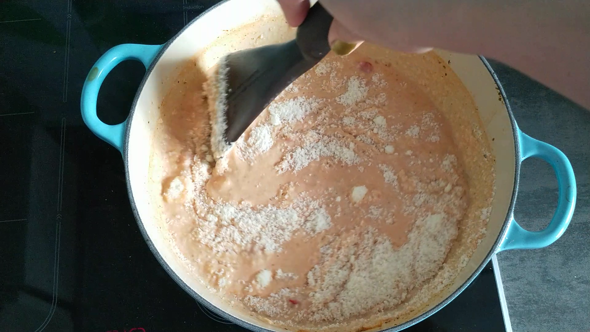 Die Frischkäse-Parmesan-Sauce ist denkbar einfach und kann nach Belieben gewürzt werden.