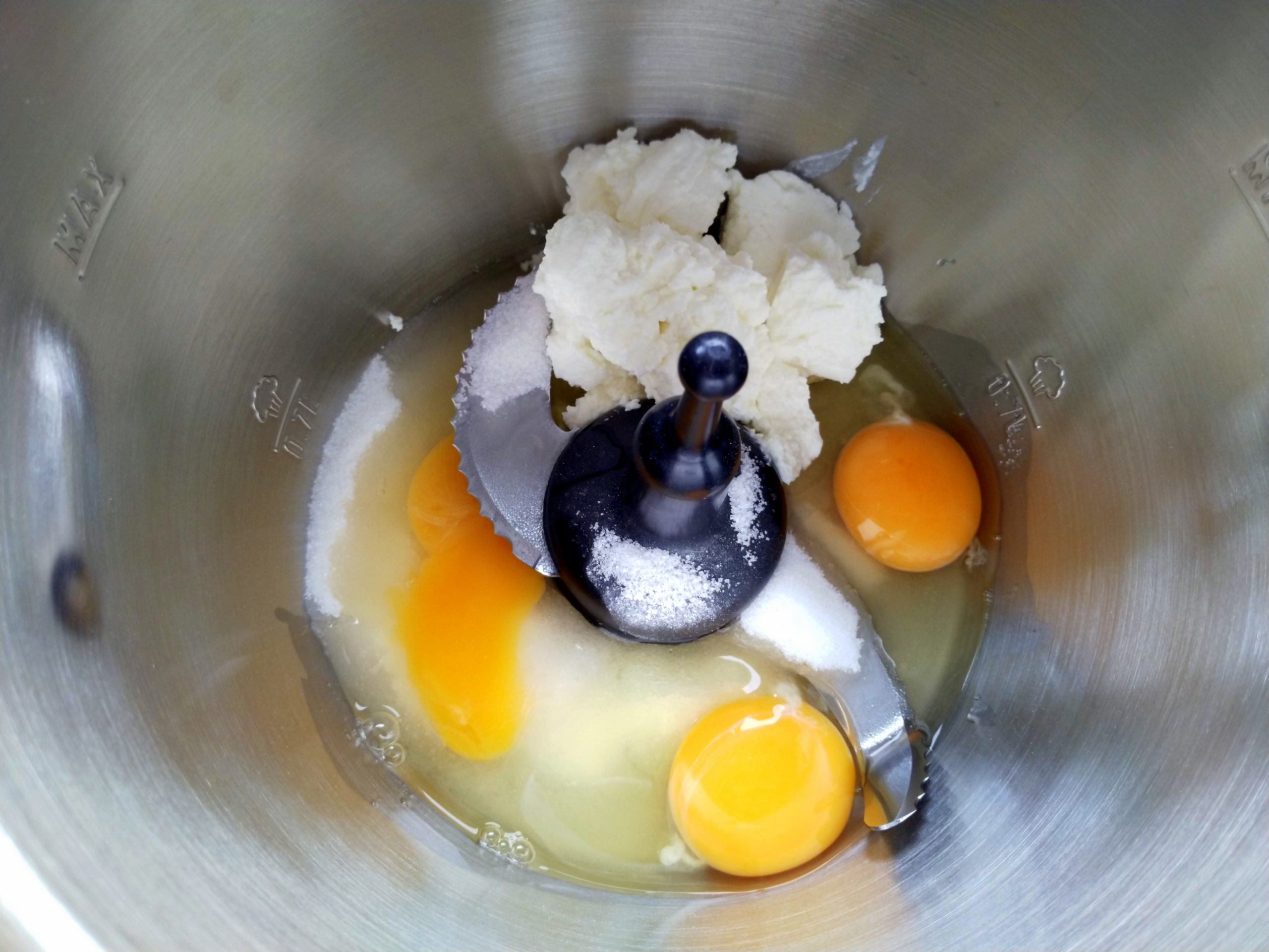 Eier mit Zucker, Vanillezucker und Quark verrühren. Anschließend Mehl vermischt mit Backpulver dazugeben und zu einen glatten Teig rühren.