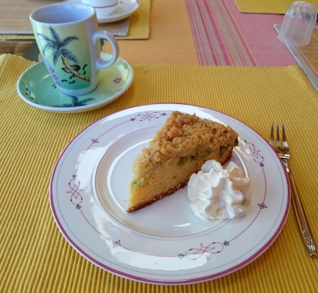 Der Kuchen schmeckt auch noch lauwarm serviert sehr lecker. Unbedingt Sahne dazu reichen.