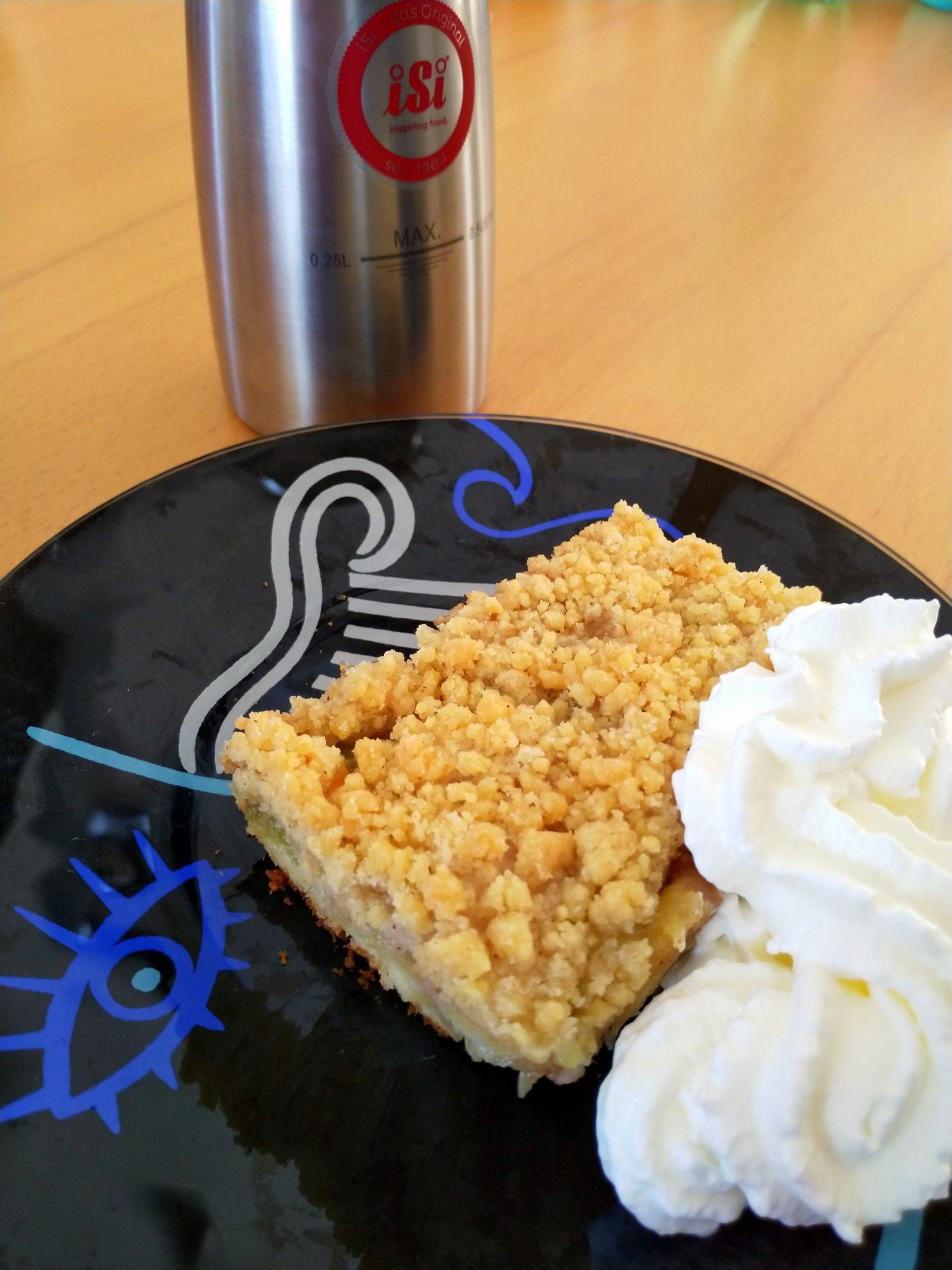 Kann gerne noch leicht warm mit Sahne serviert werden.