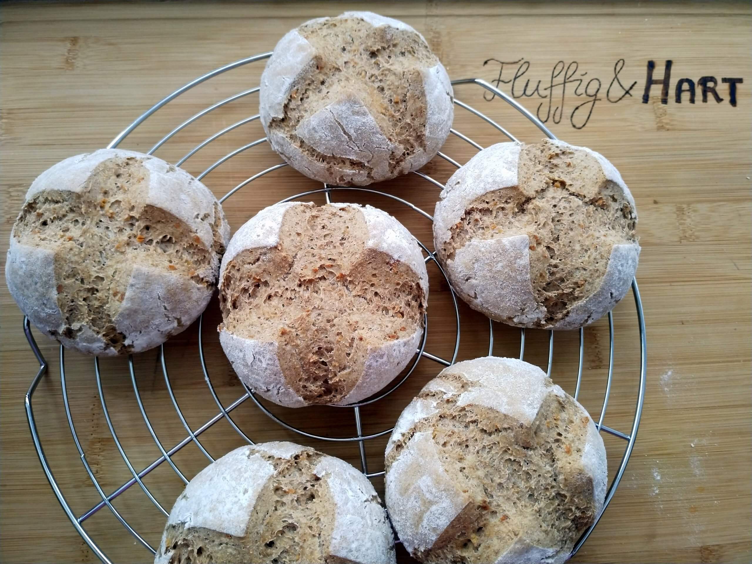 Vollkornbrötchen müssen nicht trocken sein. Durch Quark und Buttermilch werden diese Roggenbrötchen wunderbar saftig und fluffig.