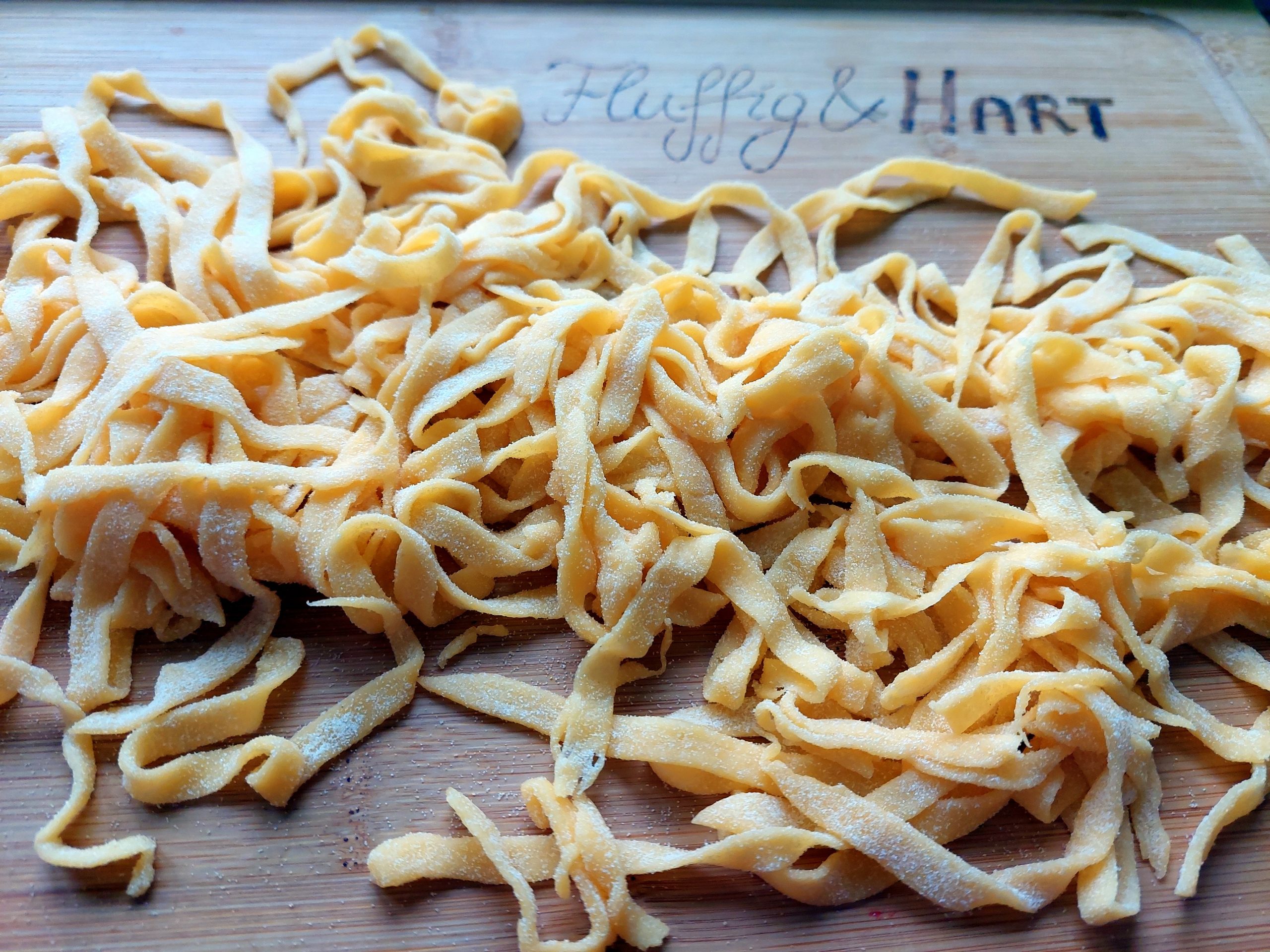 Deine Nudeln sehen köstlich aus – und es geht wirklich nichts über selbstgemachte Pasta. Seit bei mir der Pastamaker steht, gibt es auch nur noch sehr selten Fertignudeln.