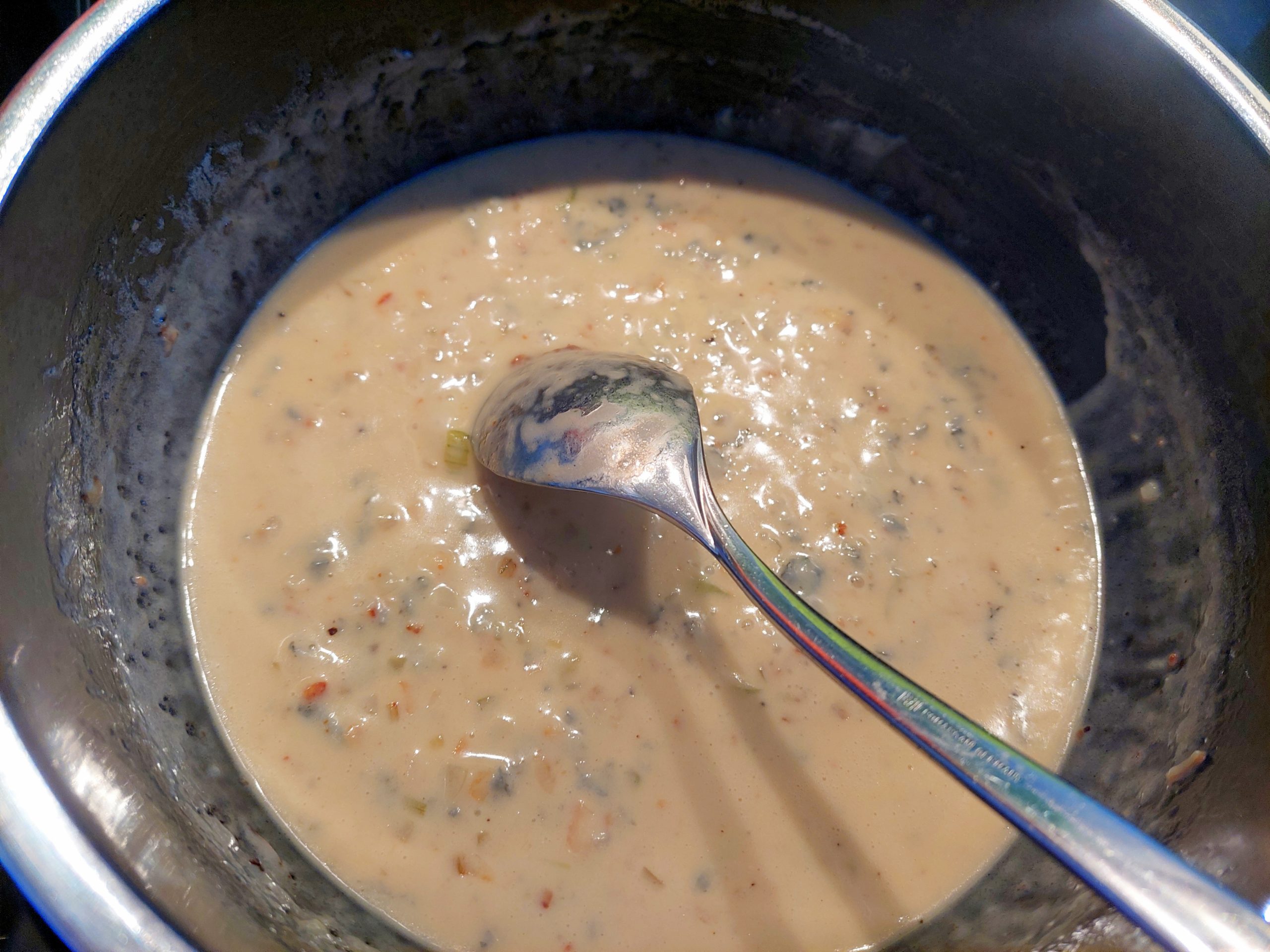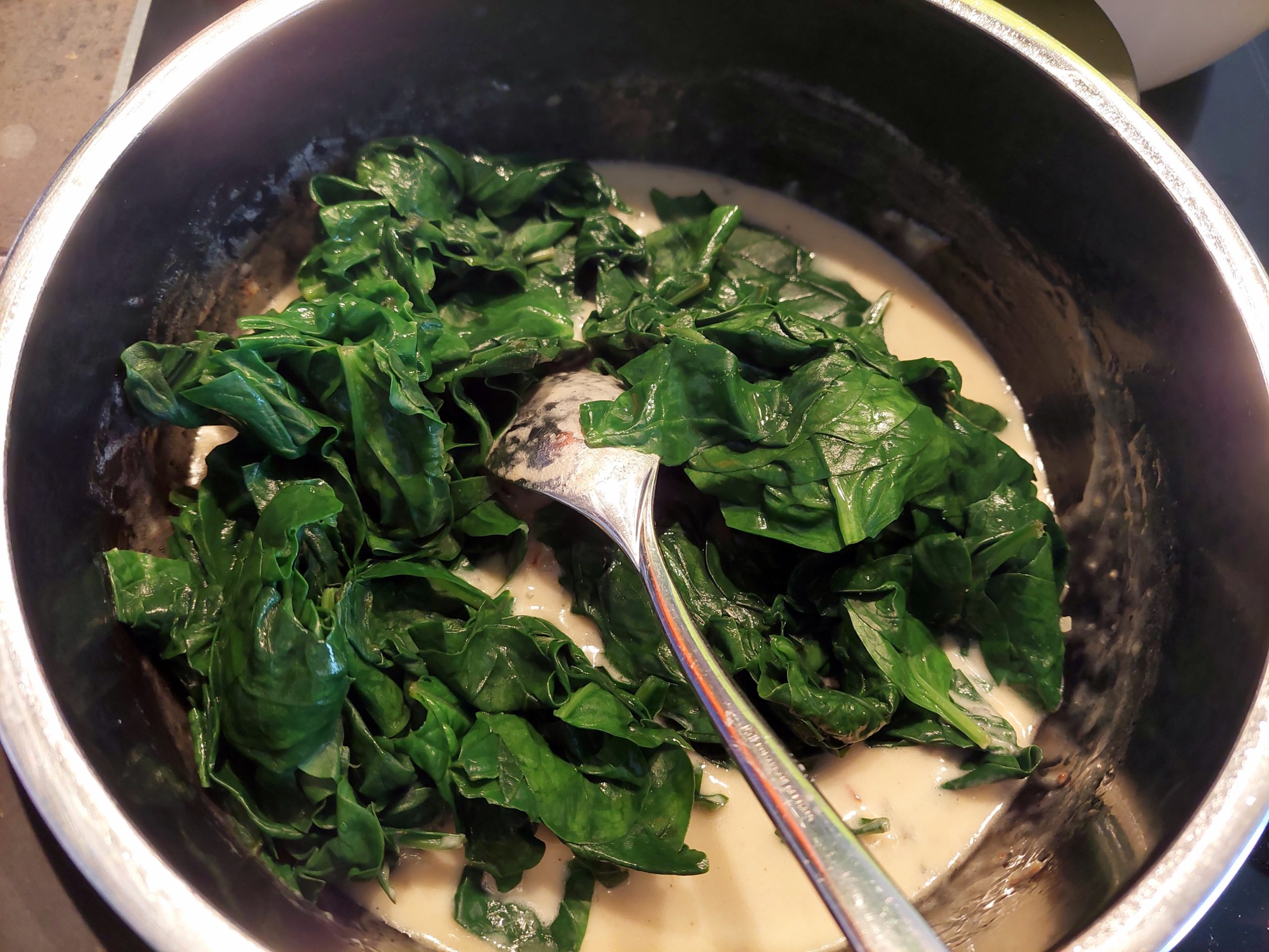 Die Sauce habe ich dieses Mal eher einfach gehalten, der Gorgonzola wird mit Sahne aufgelöst und der Spinat dazugegeben.