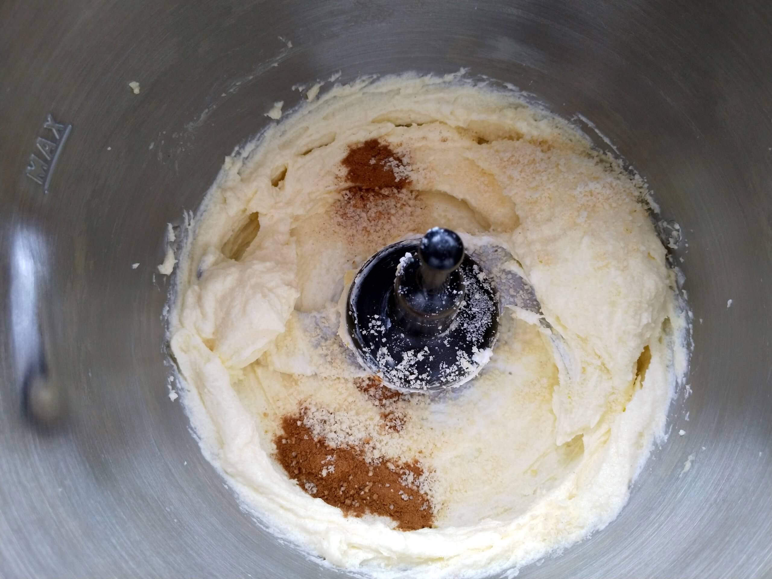 Bei Verwendung der Prep&Cook das Knet-/Mahlmesser einsetzen. Butter, Zucker und Ei in die Schüssel geben und auf Stufe 5 für 1min rühren. Anschließend den Quark kurz einrühren, danach gemahlene Mandeln und Winterzaubergewürz zugeben.