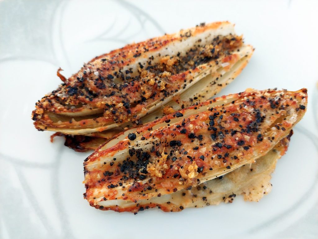 Heute wird es allerdings etwas italienisch. Chicorée ist ein äußerst beliebtes Herbst-/Wintergemüse. Auch wenn er bei uns im Familienkreis eher als Salat verzehrt wird, mag ich ihn warm lieber, da er dann nicht mehr so bitter ist. Vielleicht habt ihr ja schon mein Rezept für Chicorée vom Grill oder Chicorée im Speckmantel vom vorletzten Thema Herbstfrüchte entdeckt. Heute gibt es die vegetarische Variante ohne Speck, dafür mit Parmesan und einer aromatischen Salz-Pfeffer-Mischung.