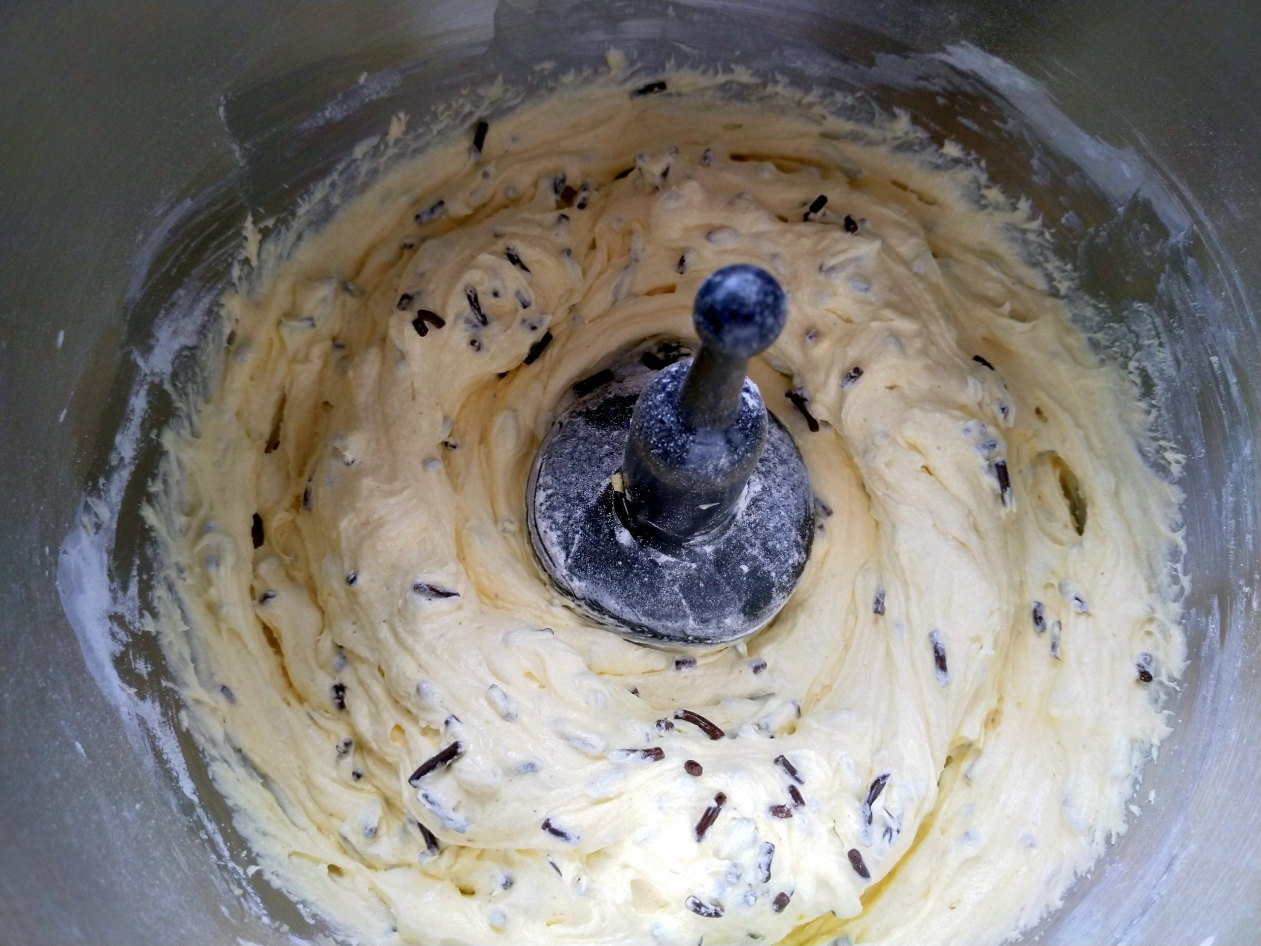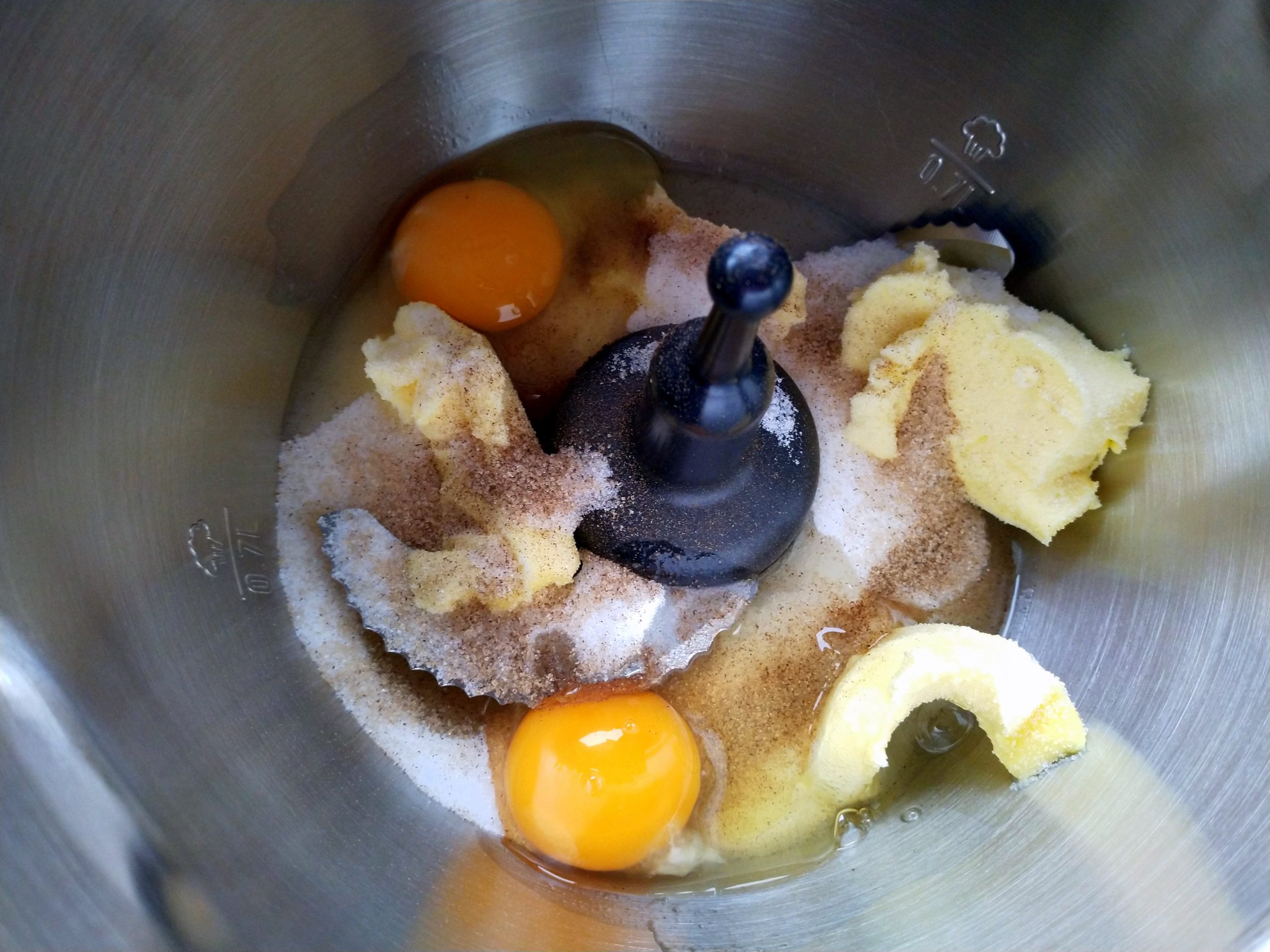 Zimmerwarme Butter, Zucker, Vanillezucker und Eier vermischen, anschließend nacheinander die anderen Zutaten zugeben.