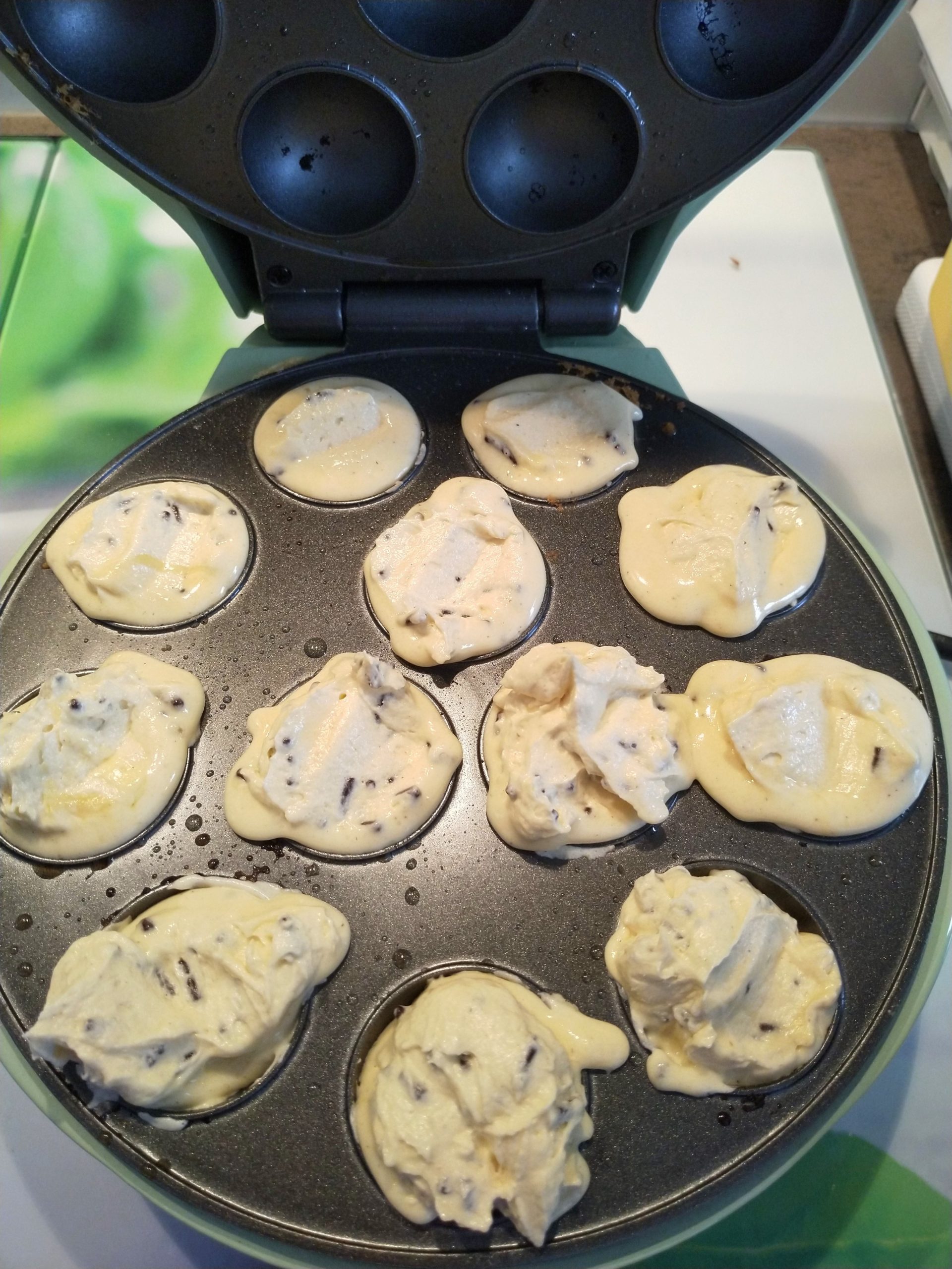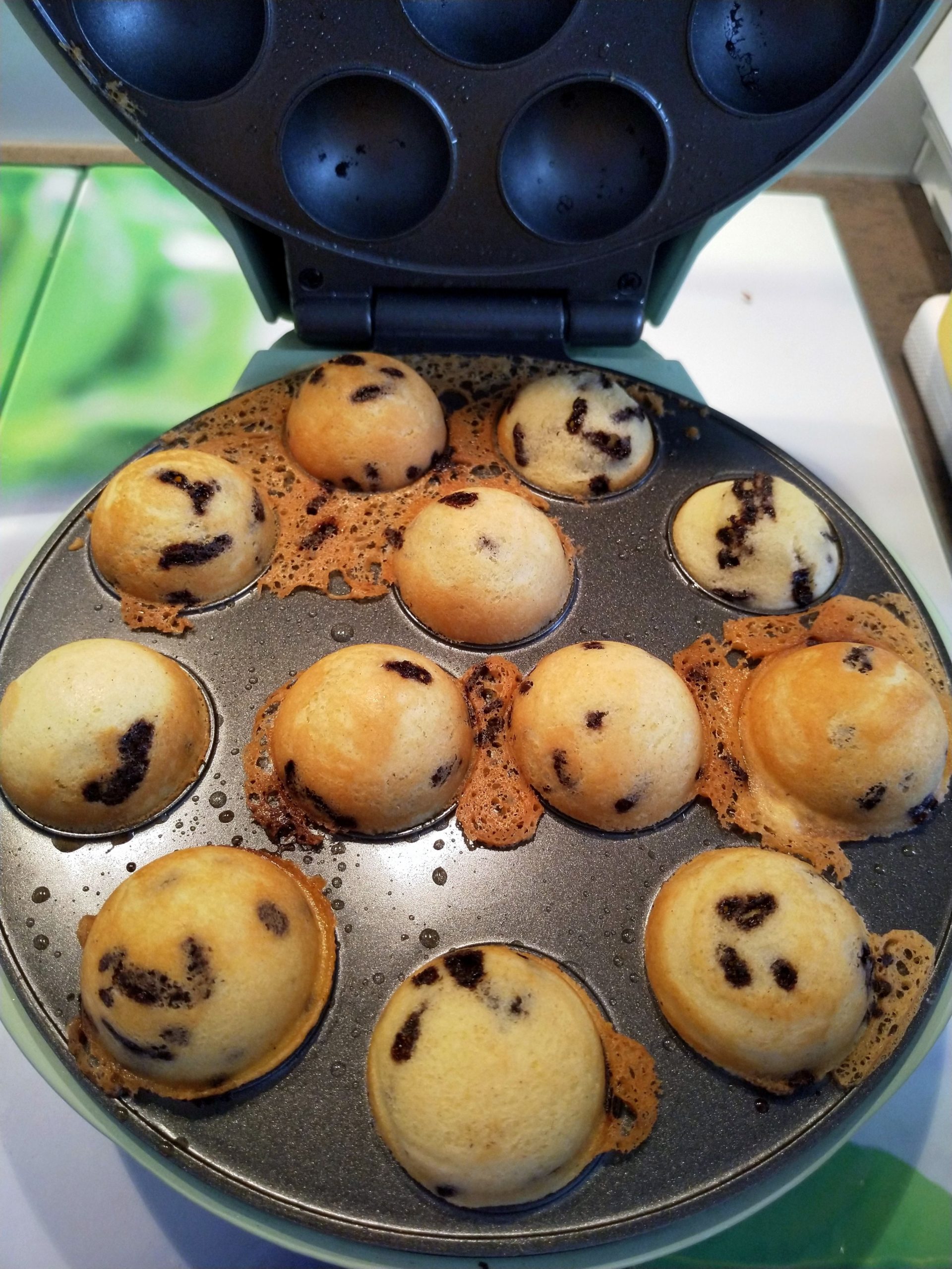 Cakepop-Maker heiß werden lassen und mit Backspray dünn aussprühen. In jede Kuhle etwas Teig setzen und einige Minuten backen.