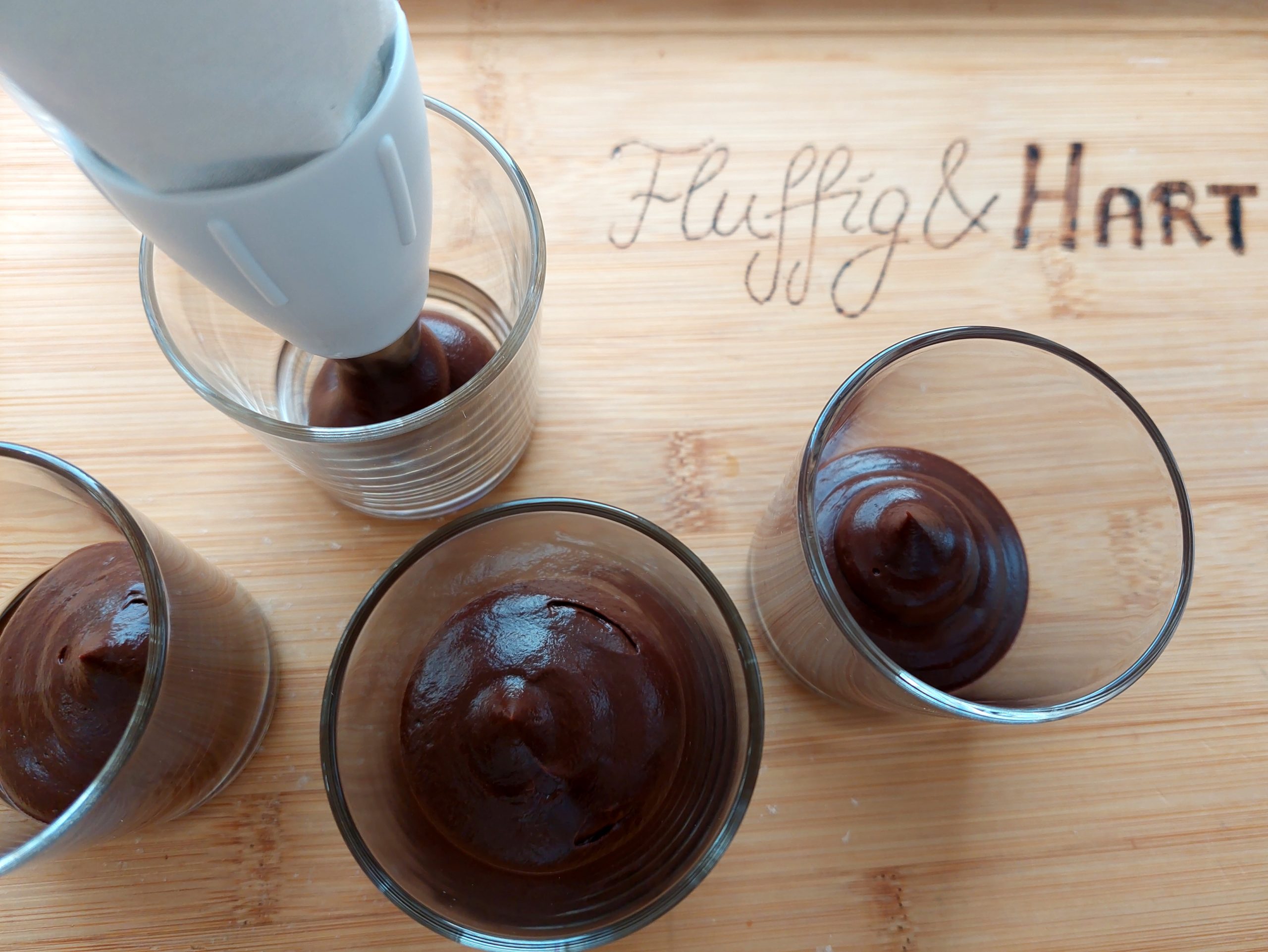 1. Mousse in Gläser füllen und bis zum Servieren kalt stellen. Wer in kleine Gläser abfüllt, sollte zum besseren Befüllen eine Spritztülle benutzen.