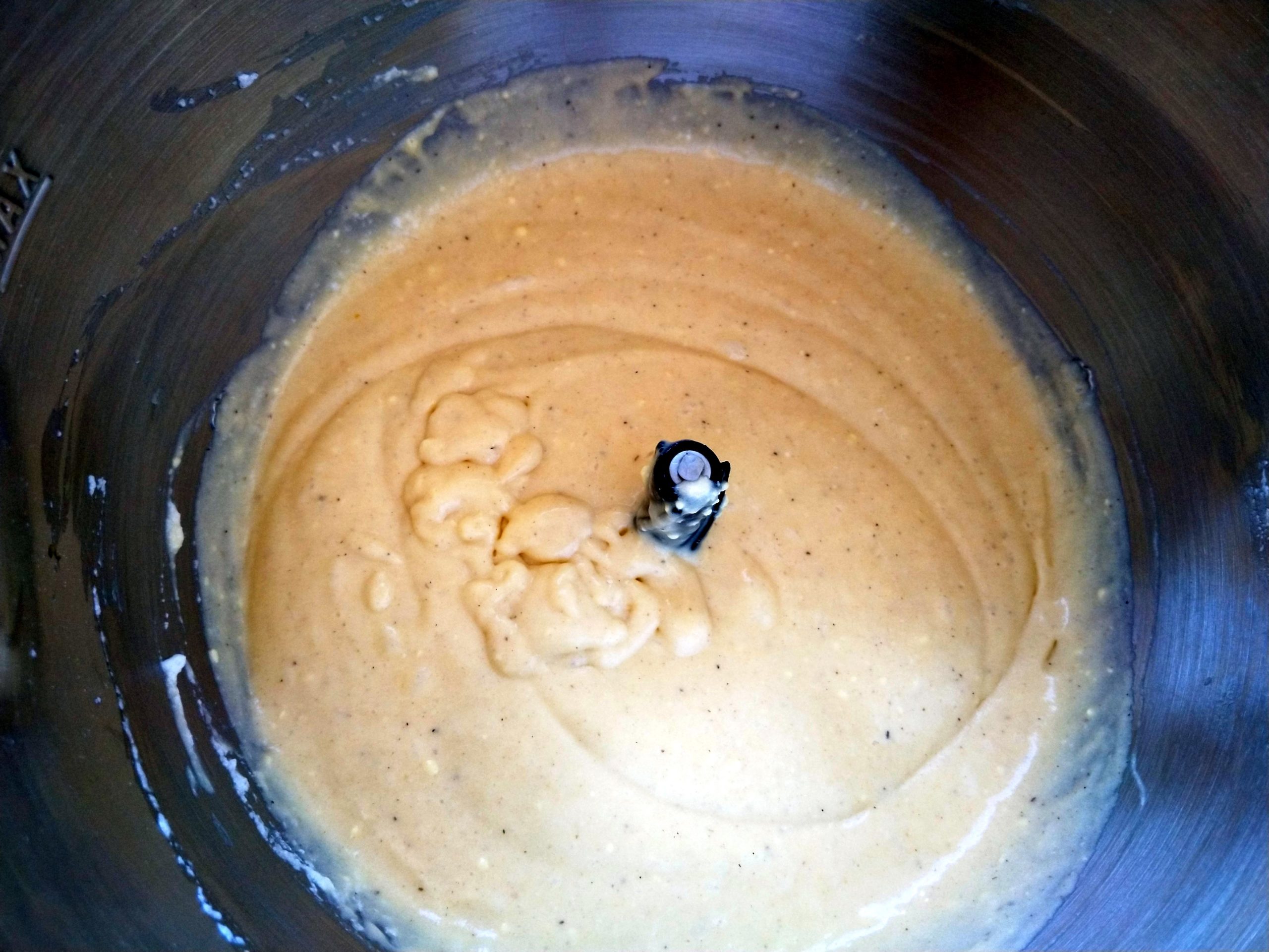 Danach die Sahne und zum Schluss das Mehl untermengen.