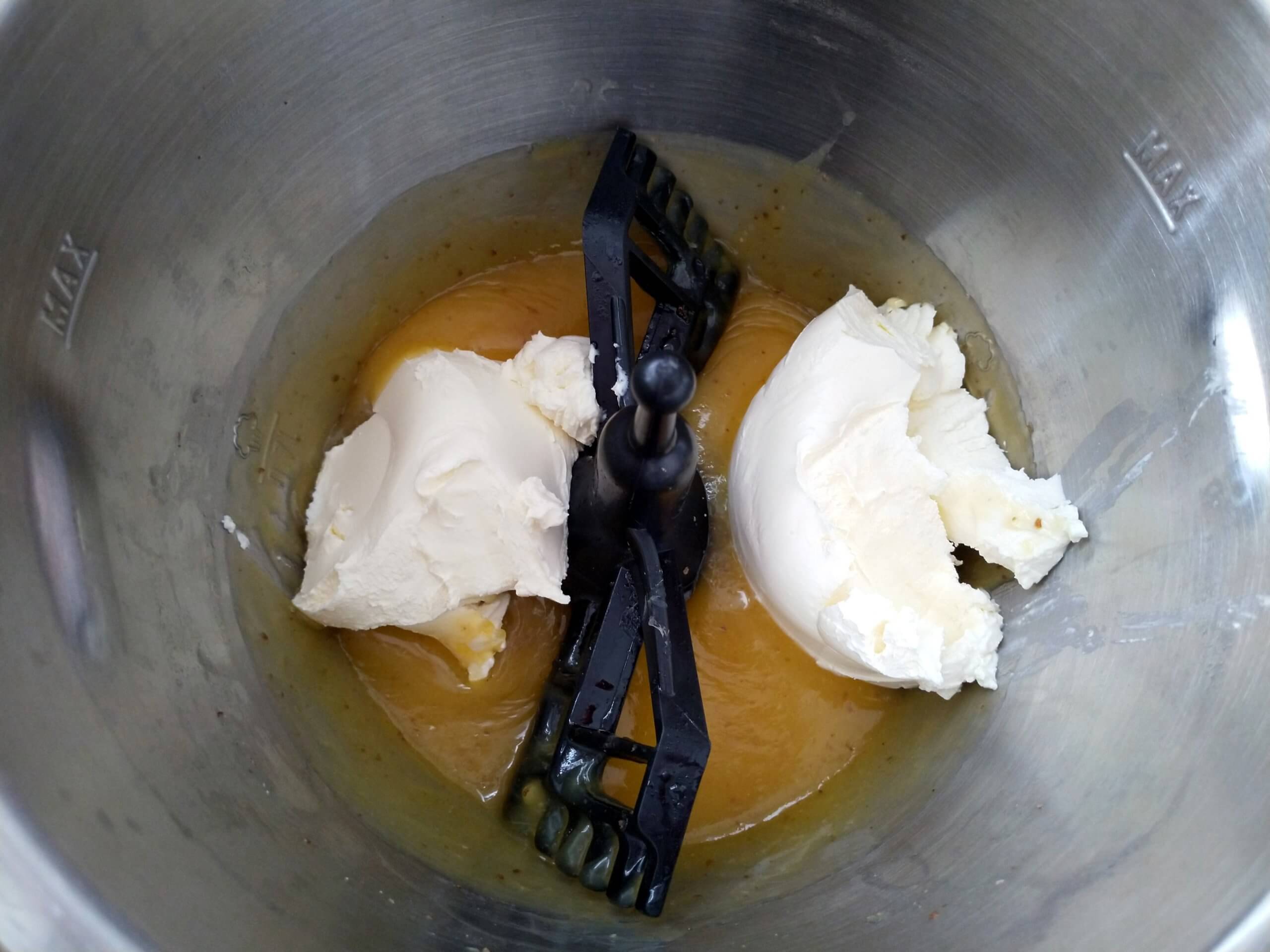 1. Wenn die Creme ausgekühlt ist, die Mascarpone drunterziehen.