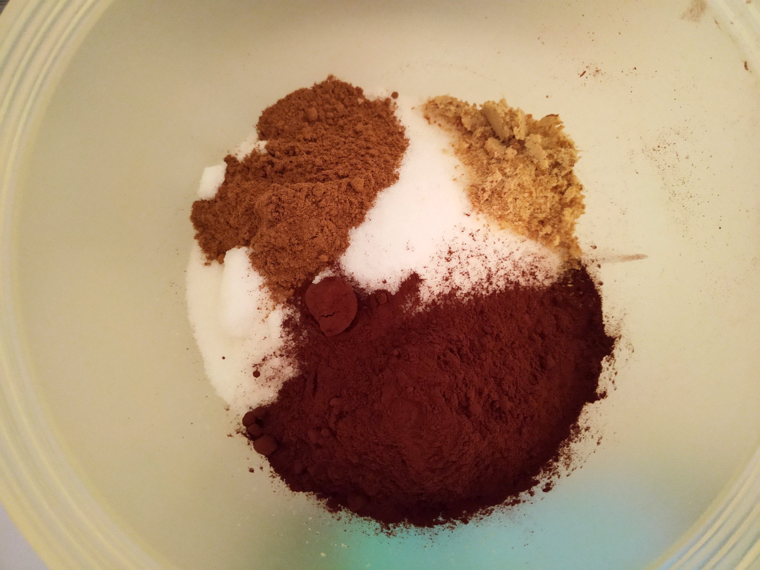 Zucker mit Zimt, Kakao und Zitronenschale mischen und zur Eiweiß-Mischung geben. Alles gründlich verrühren, so dass ein fester Teig entsteht.