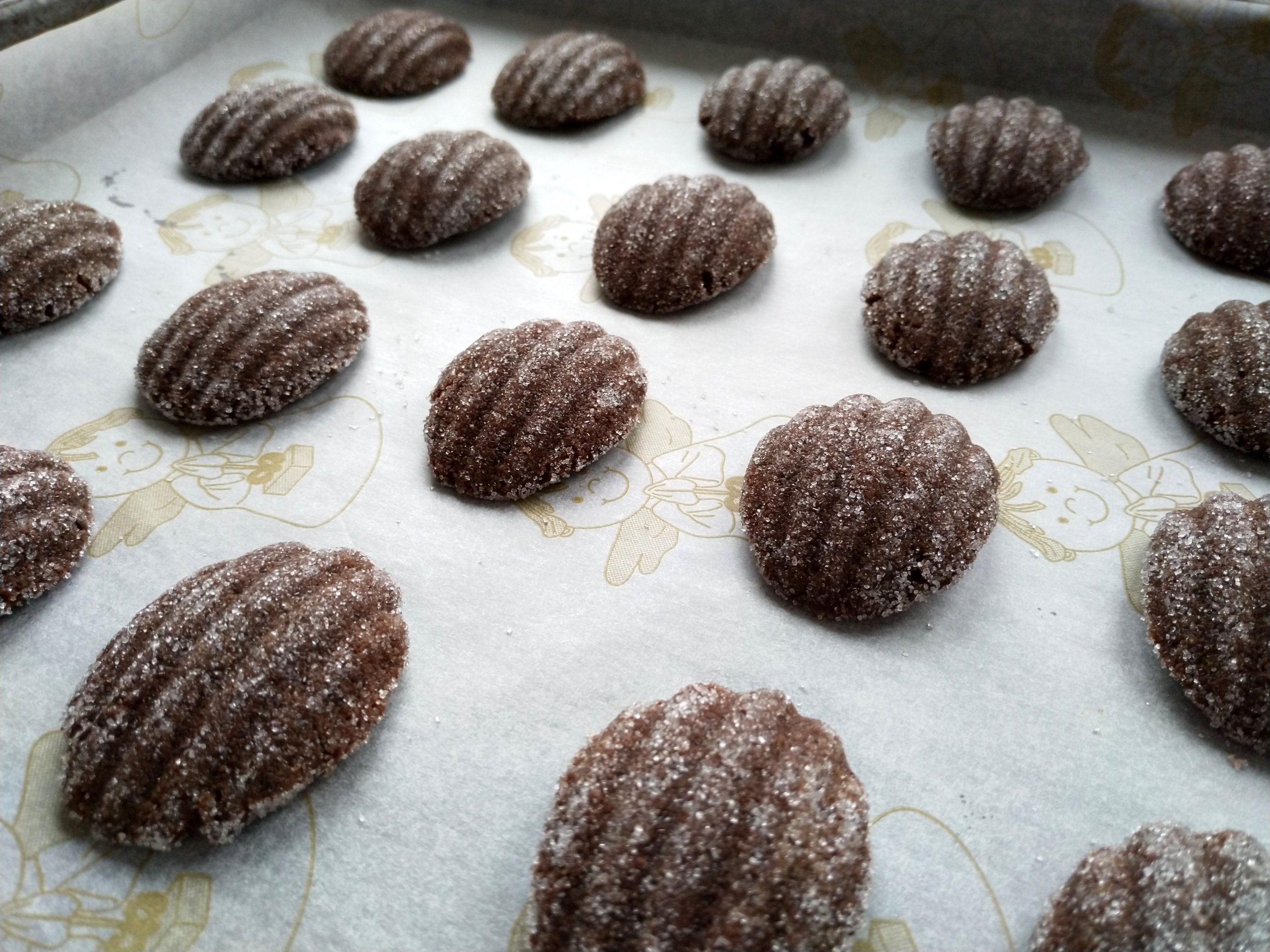Etwas Zucker in eine flaches Gefäß geben. Kleine Kugeln aus dem Teig formen, im Zucker wälzen und in eine Muschelform drücken.