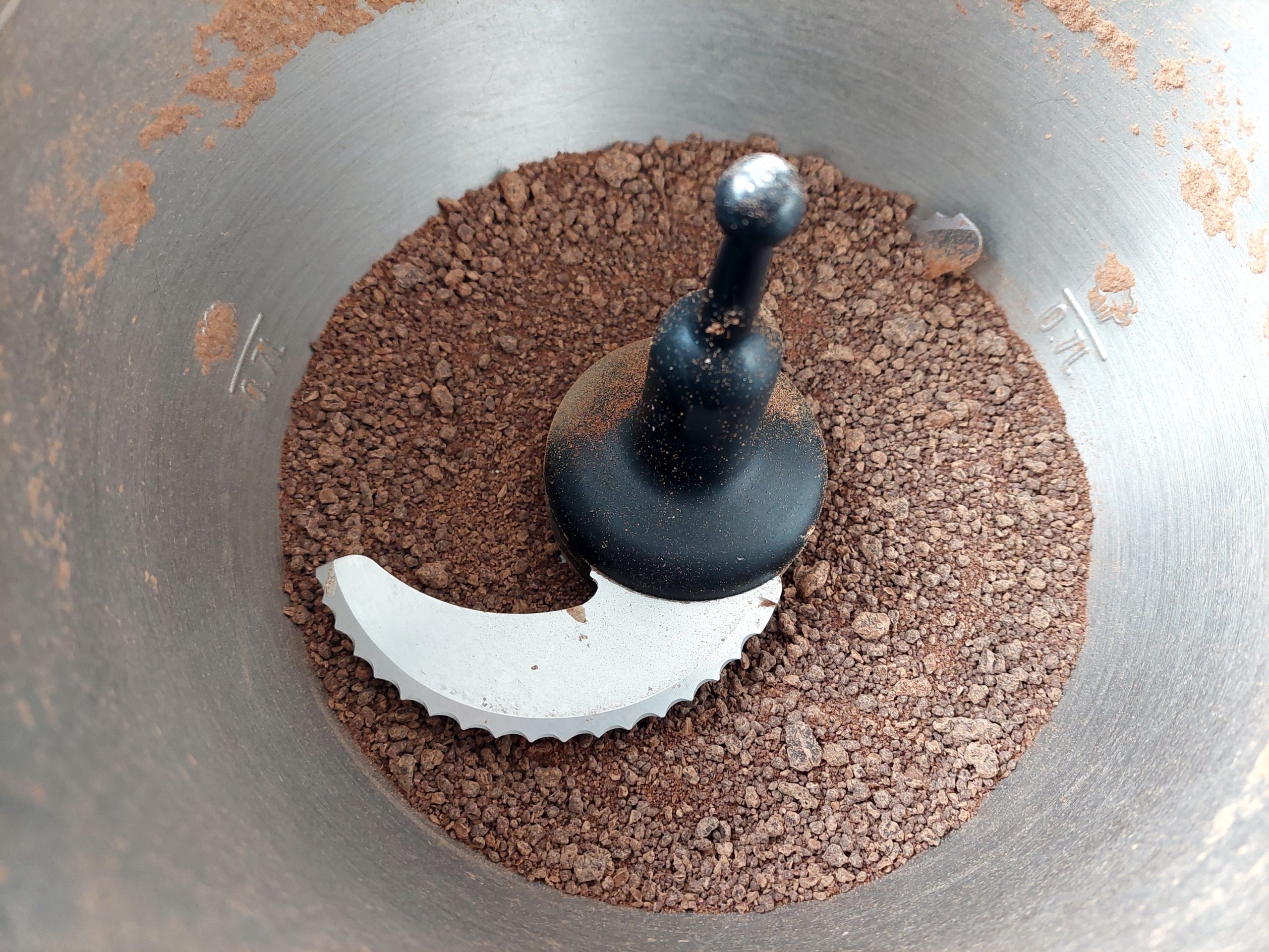 Bei Verwendung der Prep&Cook das Knet-/Mahlmesser einsetzen und die Schokolade grob zerbrochen hineingeben. Auf Stufe 10 ca. 30-60s fein hacken. Schokolade in eine Schüssel umfüllen.