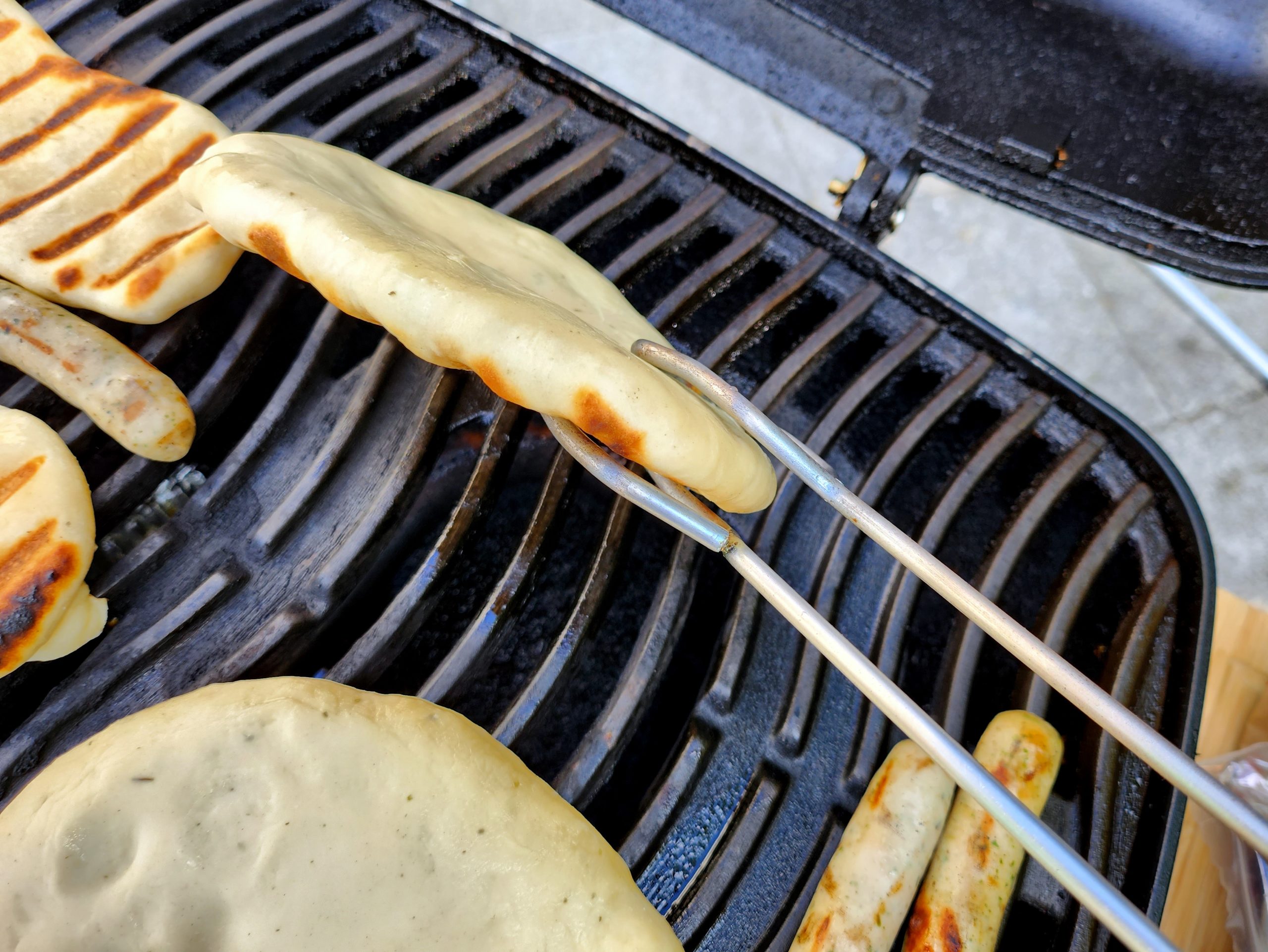 Dieses schnelle, gegrillte Brot ist perfekt für kurzfristige Grillgelüste – einfach, schmackhaft und im Handumdrehen zubereitet! Haben Sie schon einmal versucht, den Teig mit Ihren Lieblingsbelägen wie Käse oder sonnengetrockneten Tomaten zu belegen?