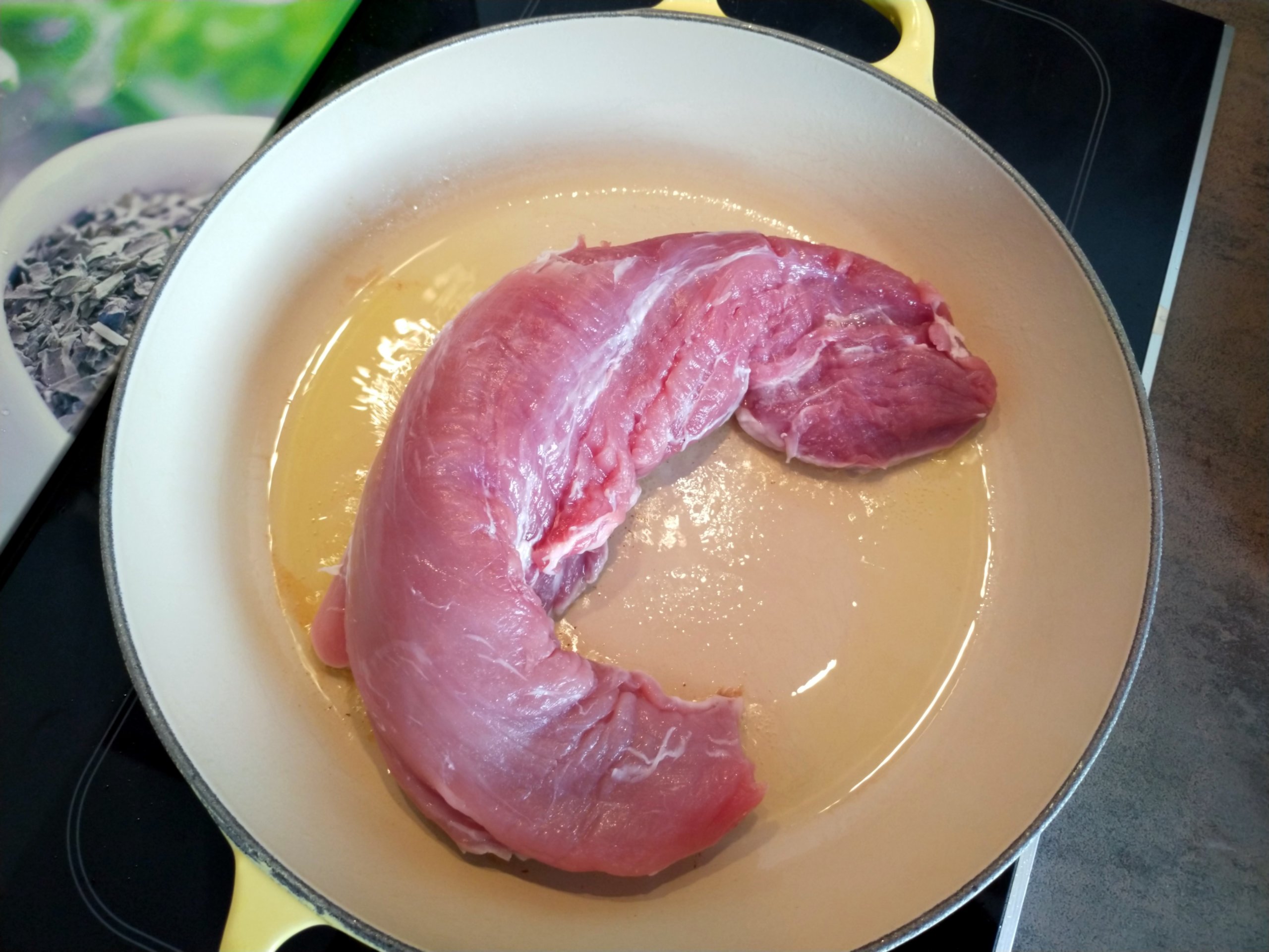 Wichtig ist, dass das Schweinefilet nicht direkt aus dem Kühlschrank kommt, sondern vor dem Anbraten Raumtemperatur hat. Ansonsten reicht die Garzeit nicht aus, damit das Fleisch in der Mitte fertig ist. Deshalb am Besten ca. 1 h vor der Zubereitung aus dem Kühlschrank nehmen.